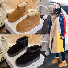 真皮雪地靴女2023冬季新款加绒毛毛平底鞋休闲保暖女靴百搭靴子女