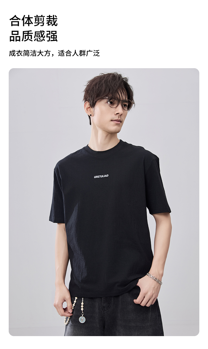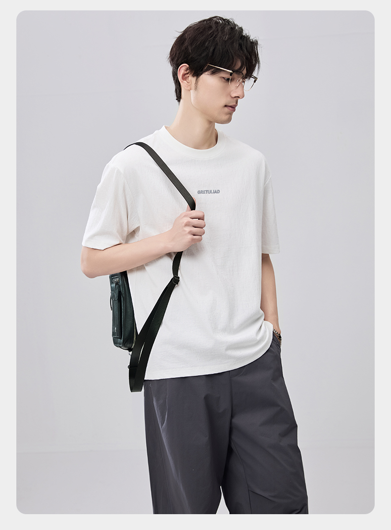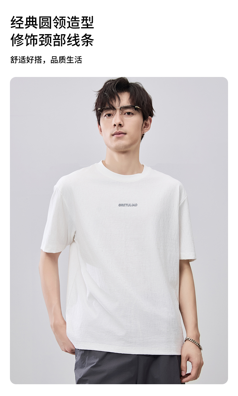 贝纳川夏季肌理面料圆领短袖T恤ECF214012