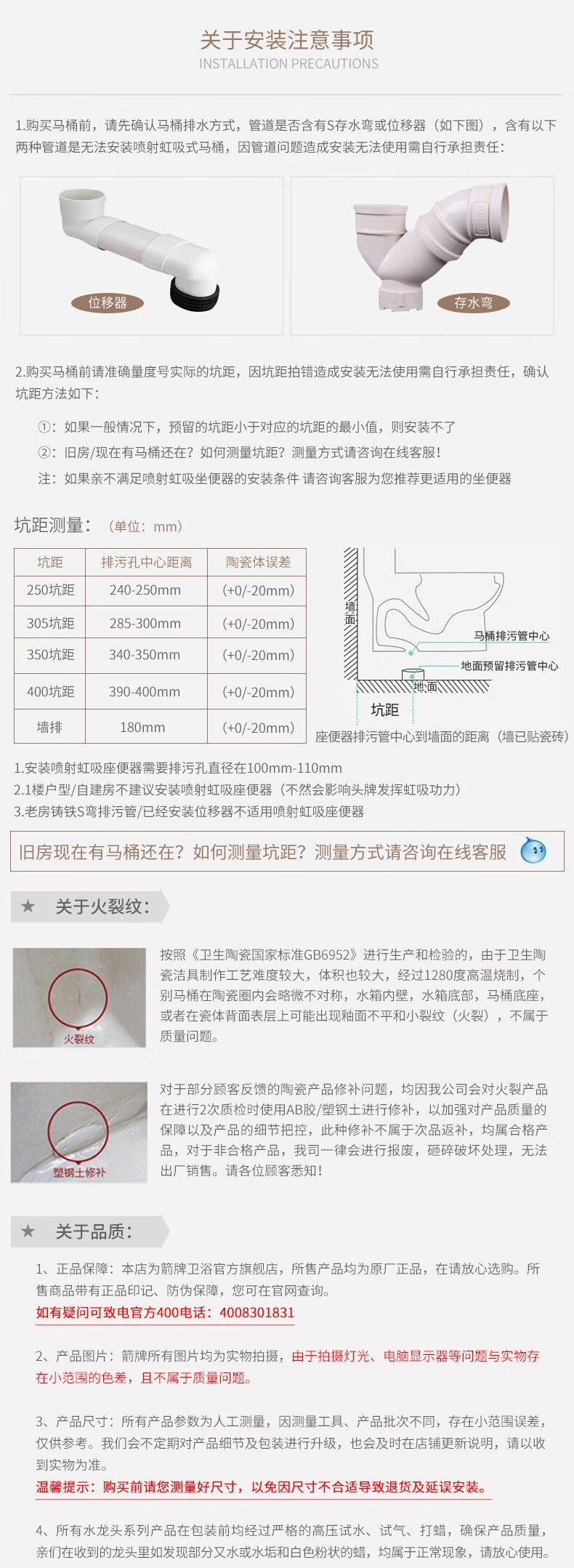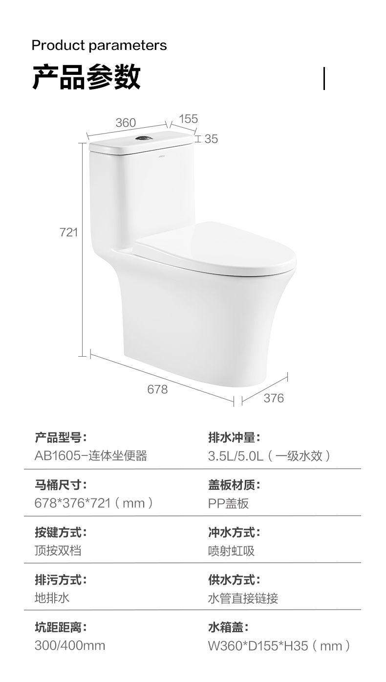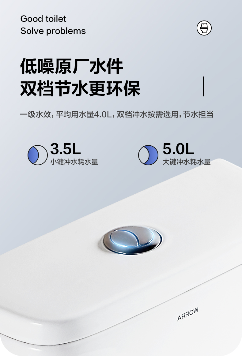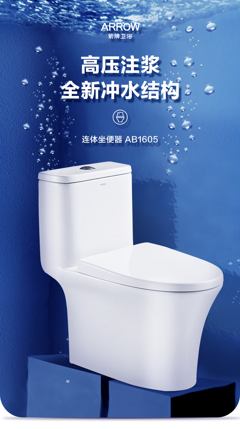 箭牌(ARROW) 箭牌虹吸马桶家用节水静音易洁釉面喷射旋冲连体坐便器AB1605 AB1605 300坑距