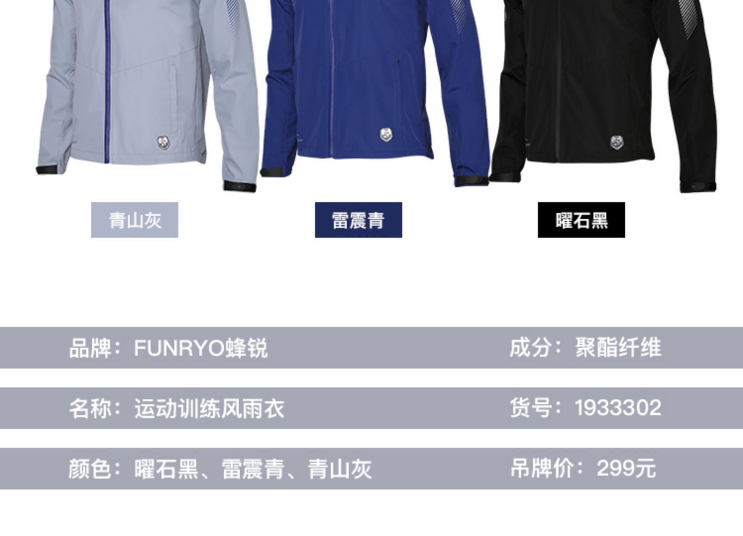 FUNRYO蜂锐自然之力训练风雨衣外套夹克男1933302