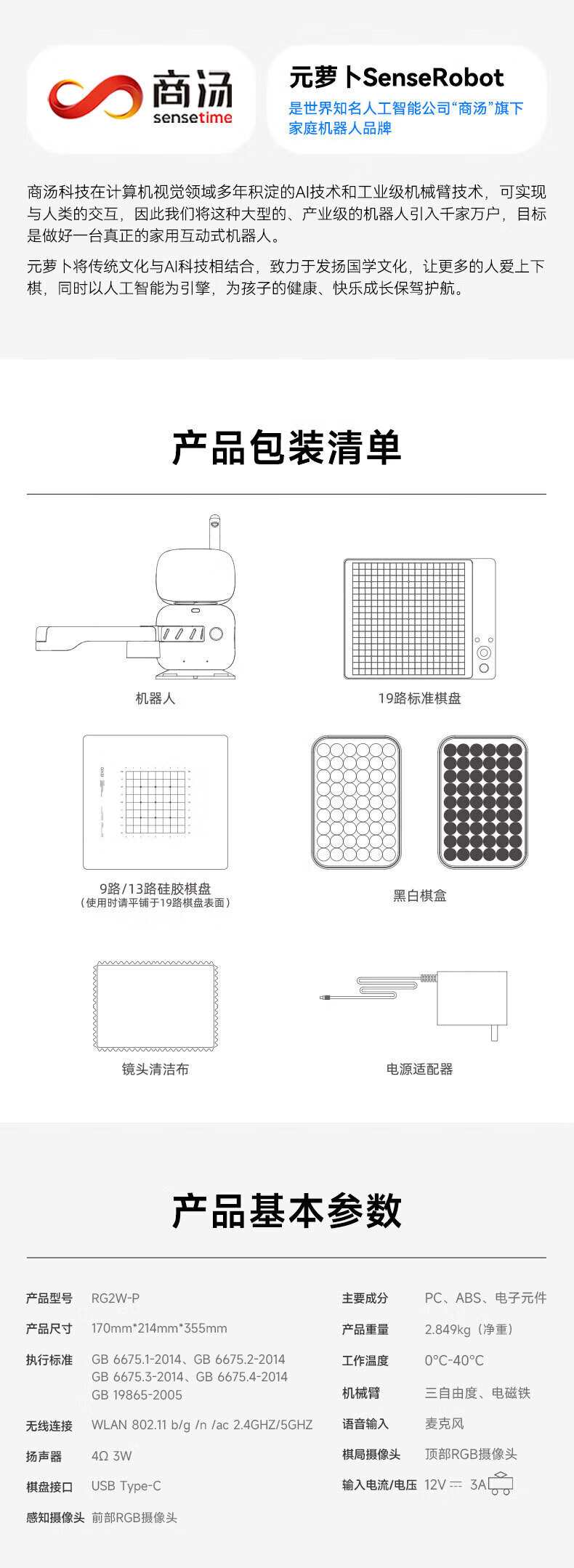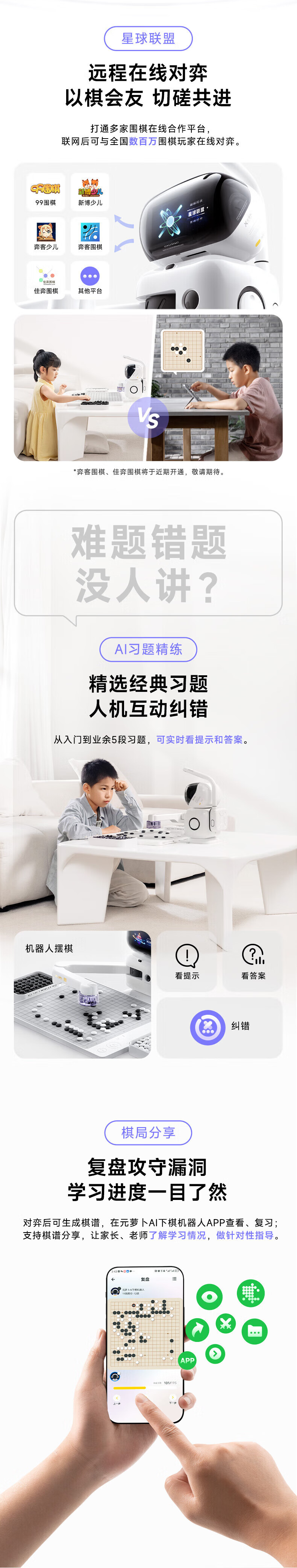 SENSEROBOT元萝卜 围棋AI下棋机器人 对弈 习题 陪练 涨棋 AI讲题 人机互动【围棋大师版】