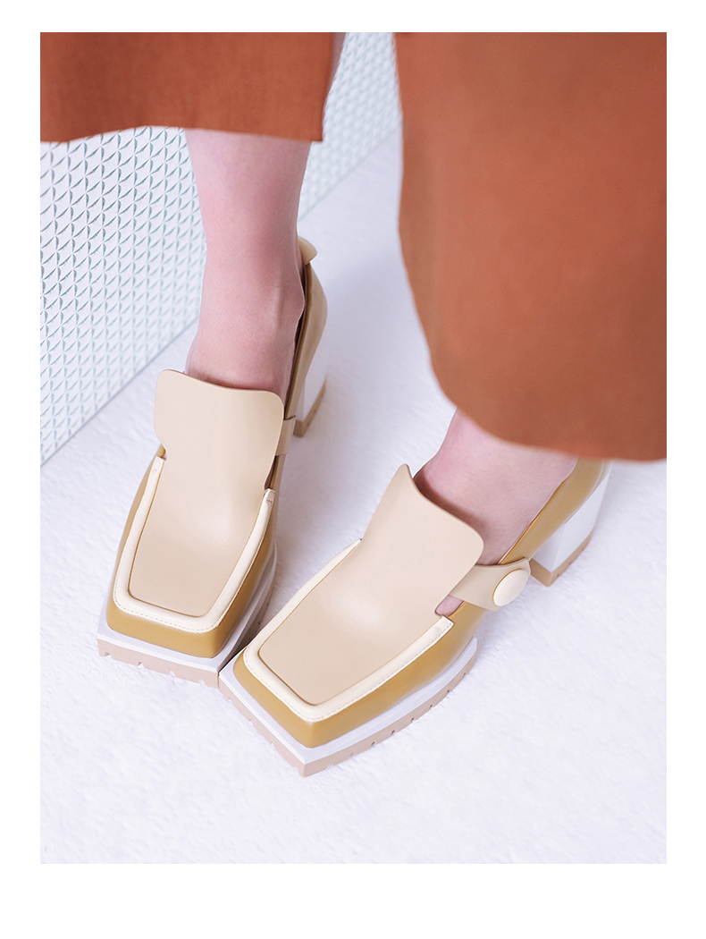 【微瑕疵不退不换】lost in echo 设计师春夏新款 加长鞋舌高跟乐福鞋