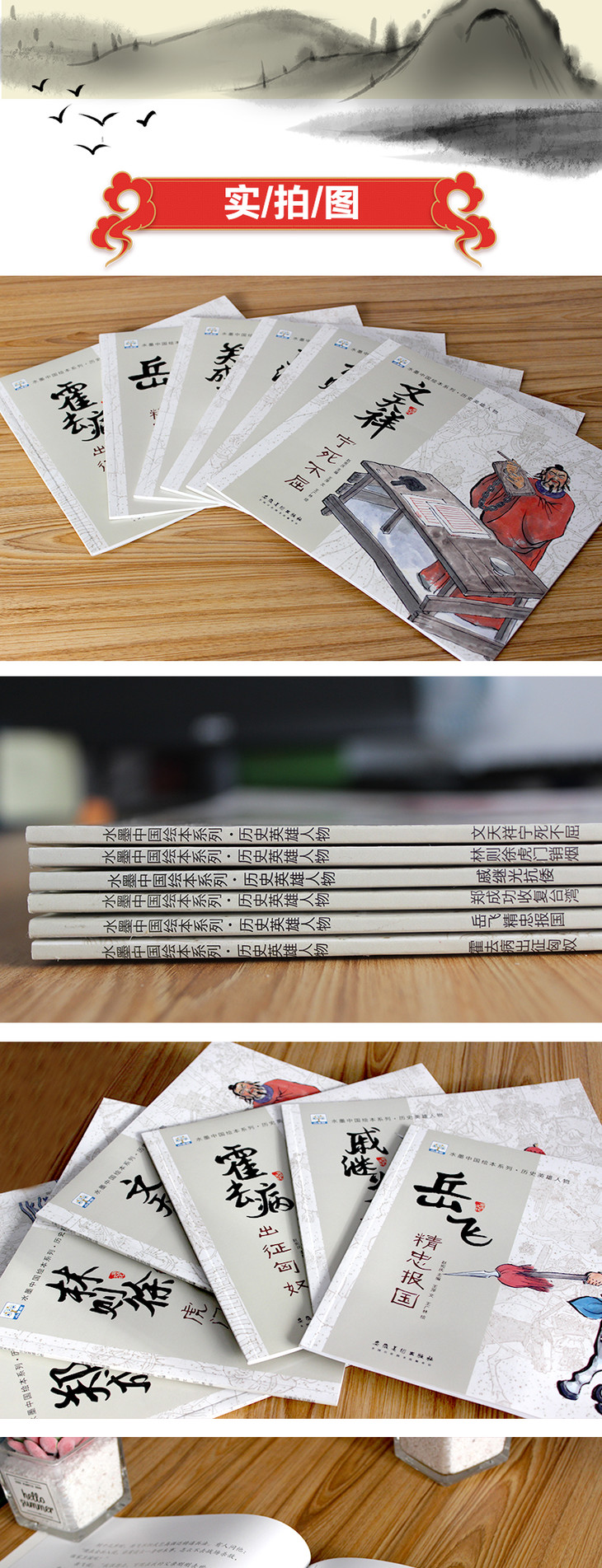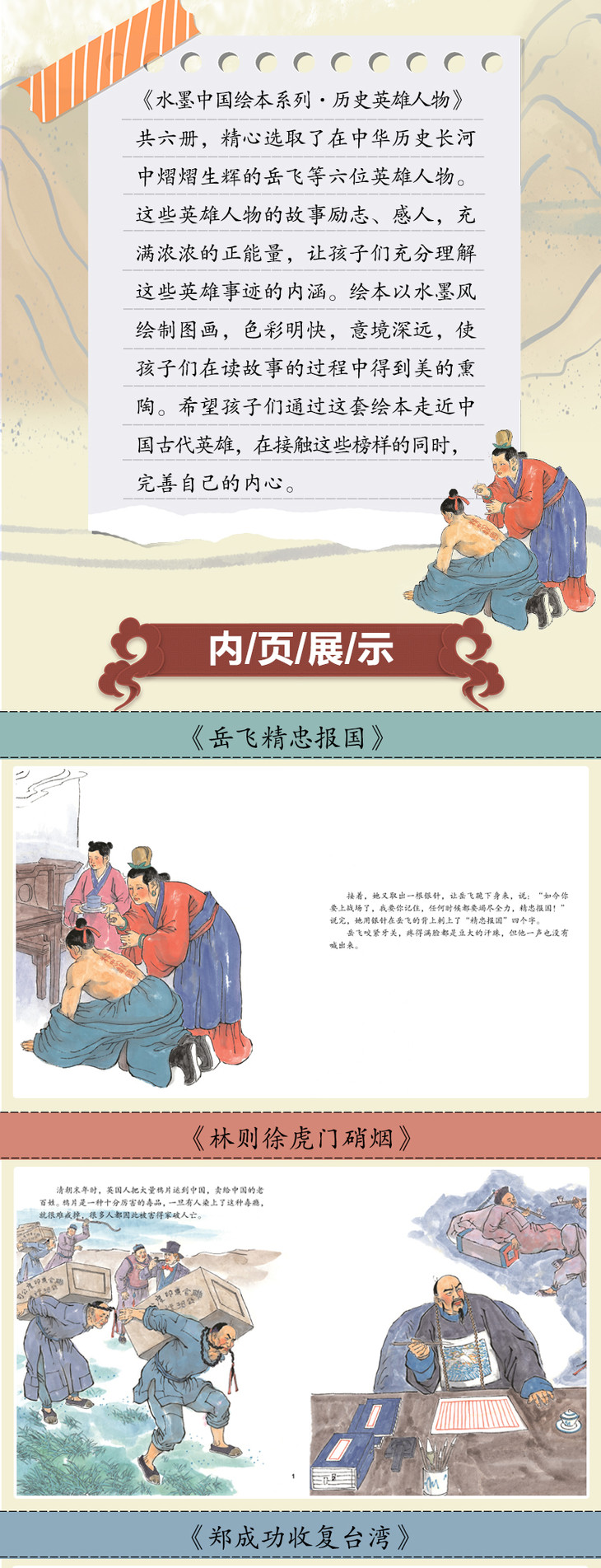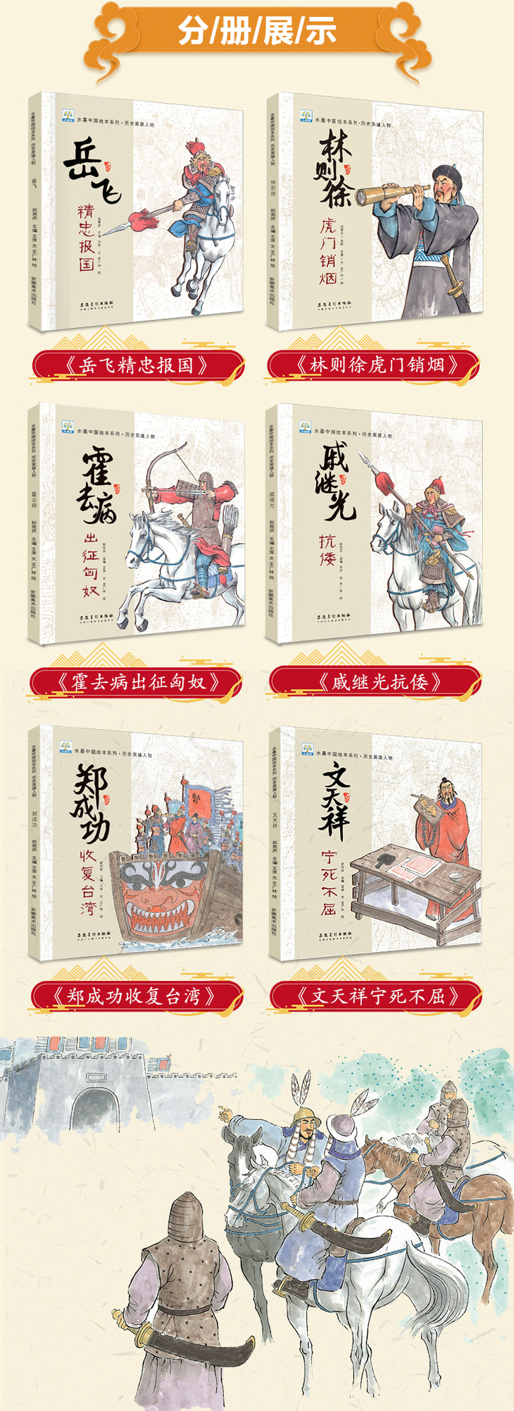 水墨中国绘本系列-历史英雄人物(扫码听读 全6册)林则徐/岳飞/霍去病/戚继光/郑成功/奇天祥