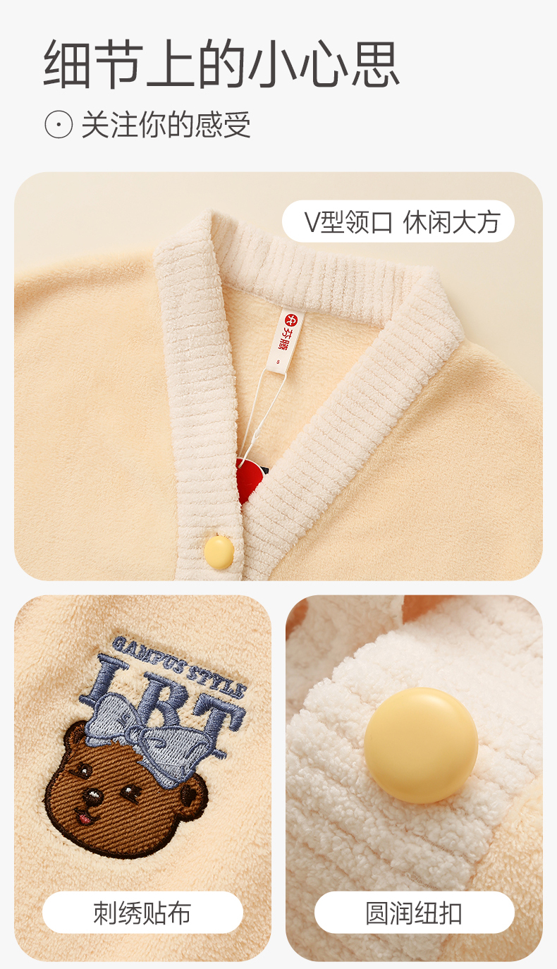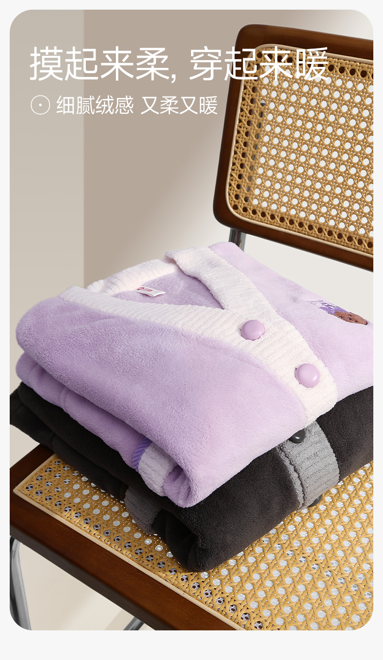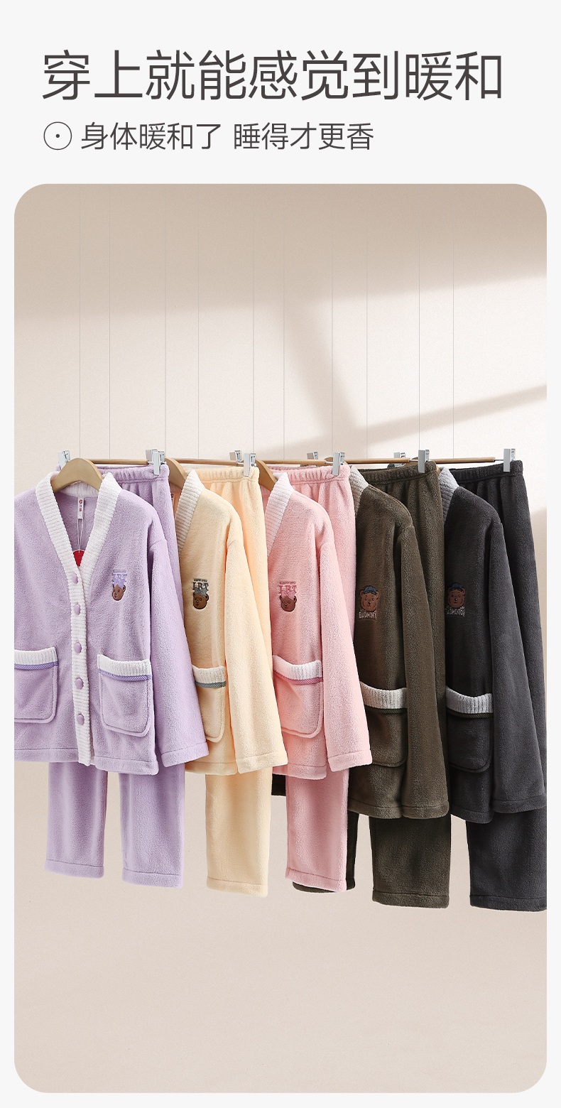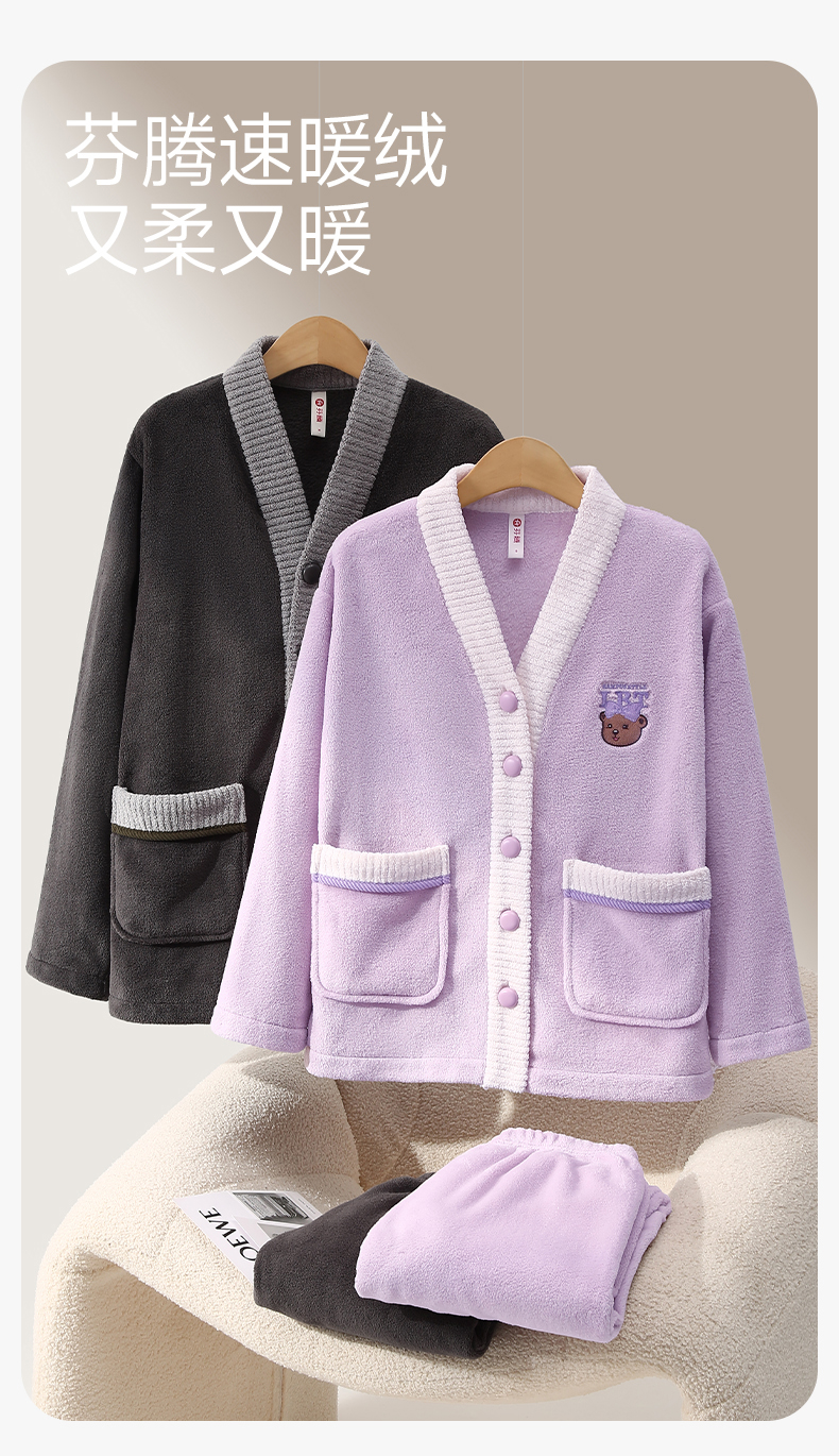 芬腾情侣新款睡衣秋冬季珊瑚绒抗静电长袖男女士法拉绒家居服套装yc0107006