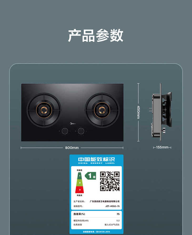 美的(510657)嵌入式燃气灶 HG52-75 天然气