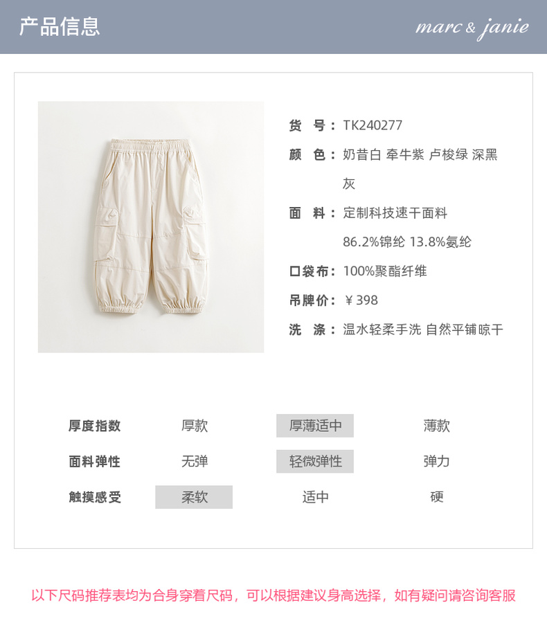 【吸湿速干】马克珍妮男女童工装运动速干裤束脚裤春装新款240277