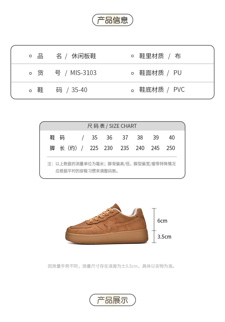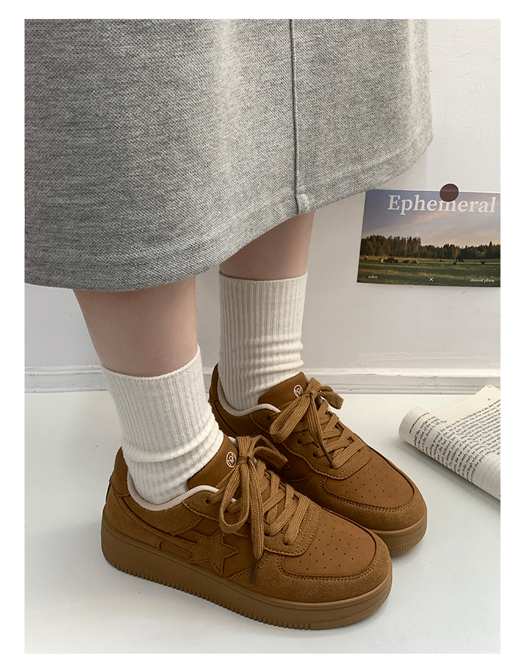 【YW】无忧购韩版复古休闲百搭基础款星星板鞋MIS-3103“驼色年后”(截单后7天发货)