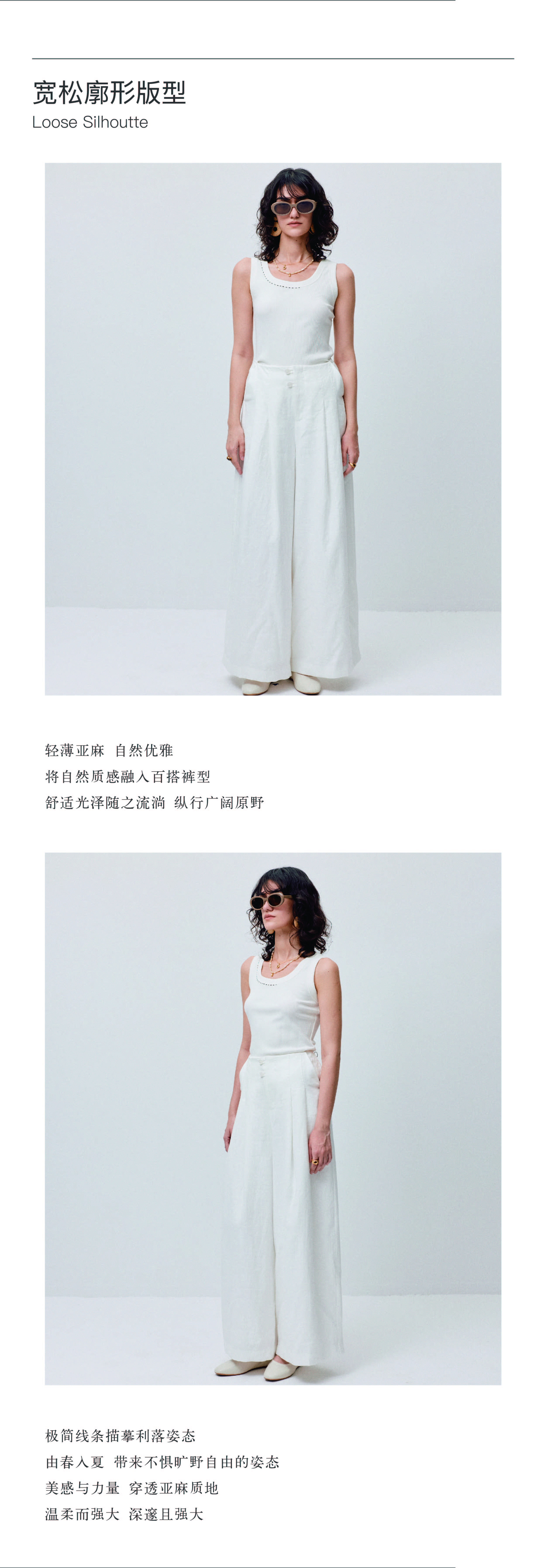 LIYIHAN亘云麻 | 25春压褶亚麻阔腿裤宽松舒适女裤子显瘦休闲