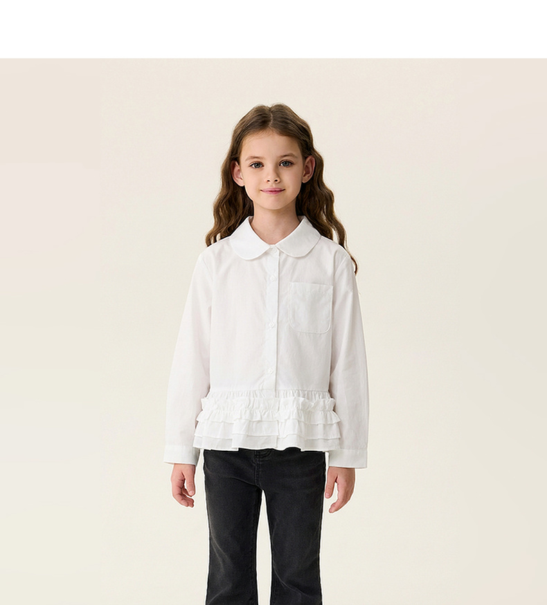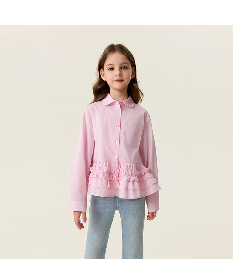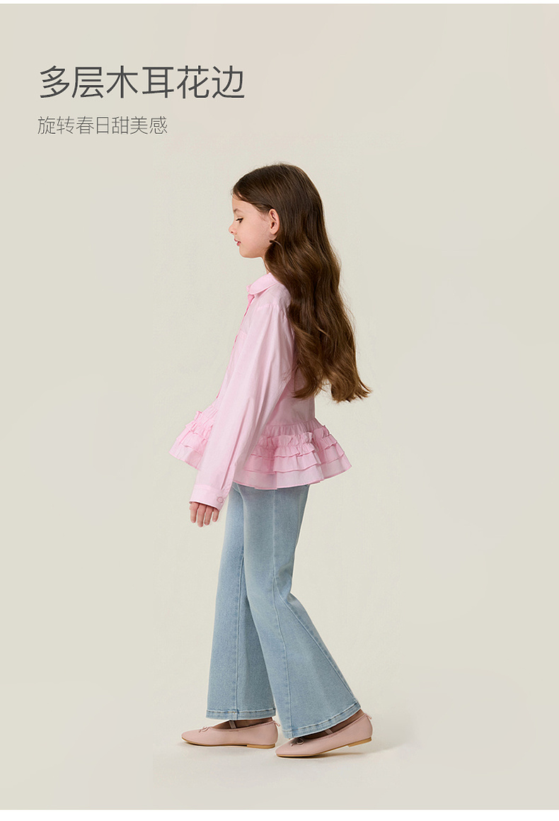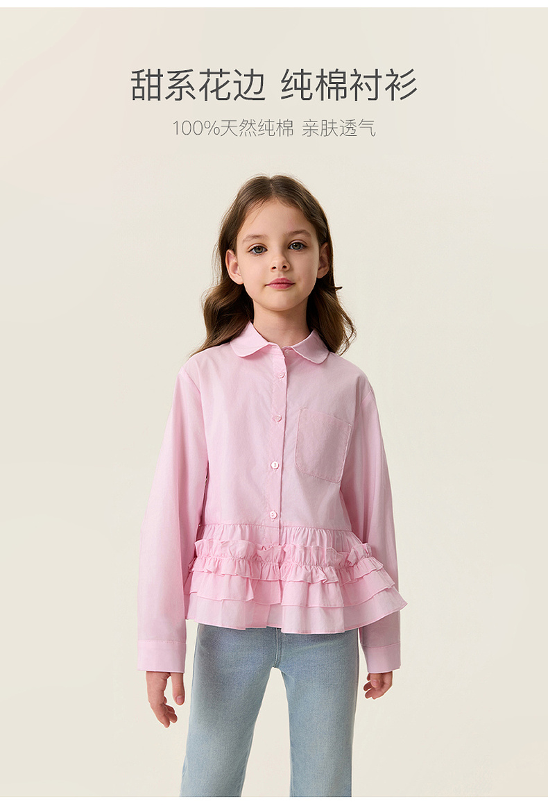 马克珍妮甜系花边女童纯棉衬衫2026年春装新款560168