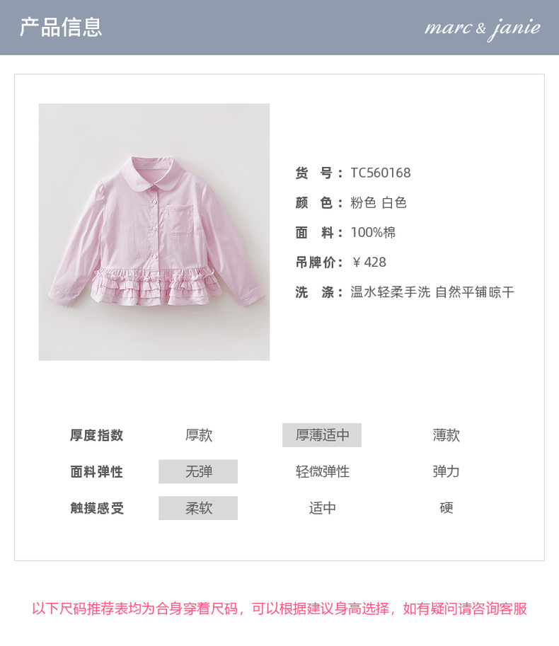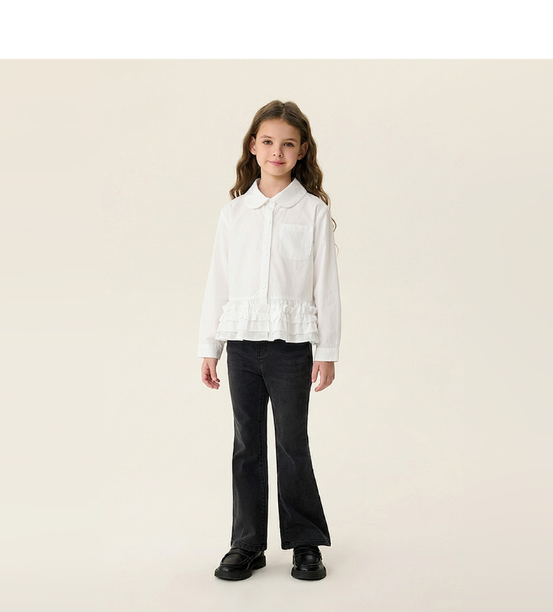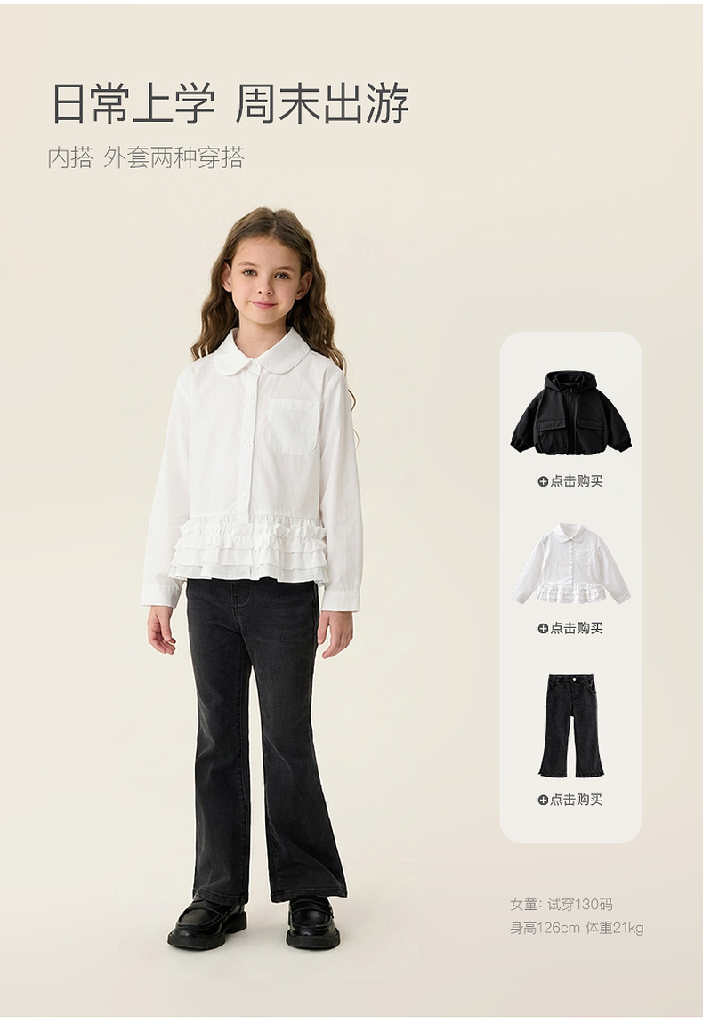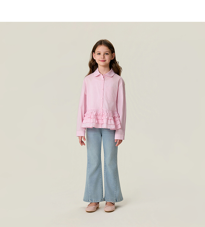 马克珍妮甜系花边女童纯棉衬衫2026年春装新款560168