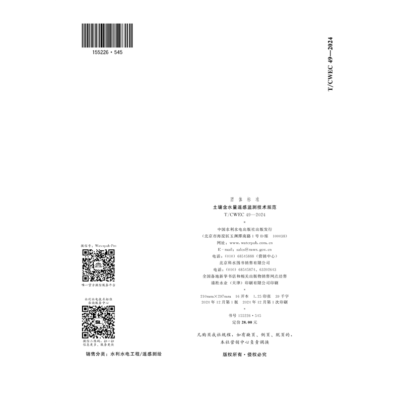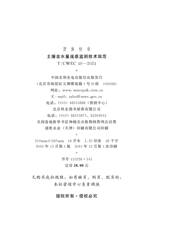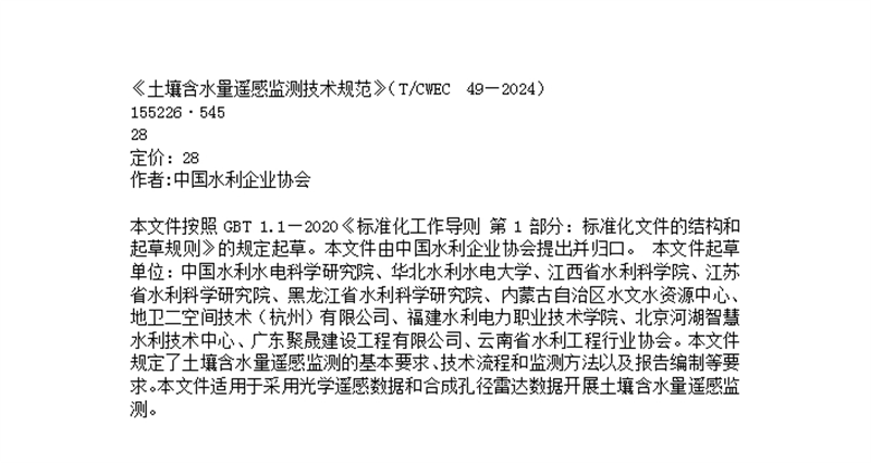 《土壤含水量遥感监测技术规范》(T/CWEC 49—2024)