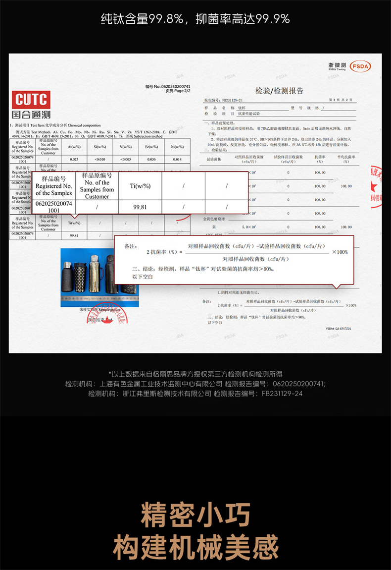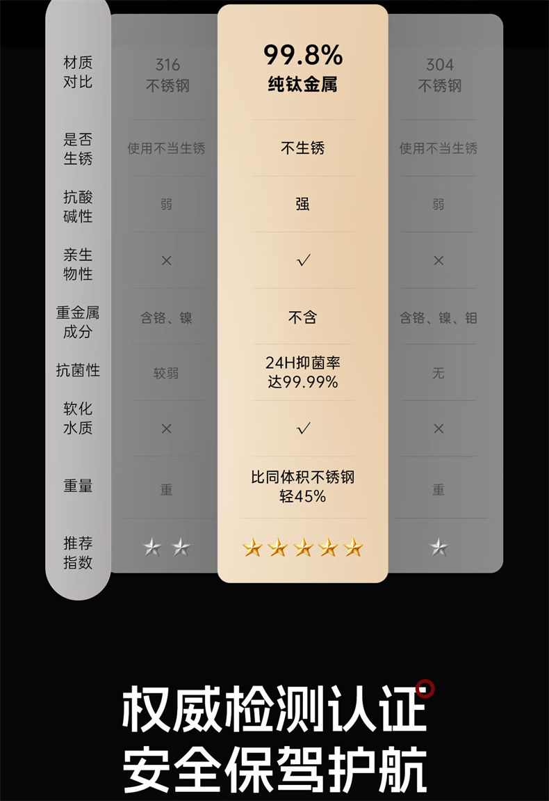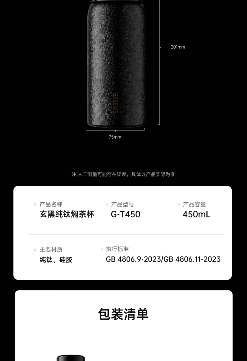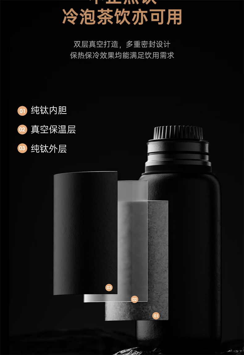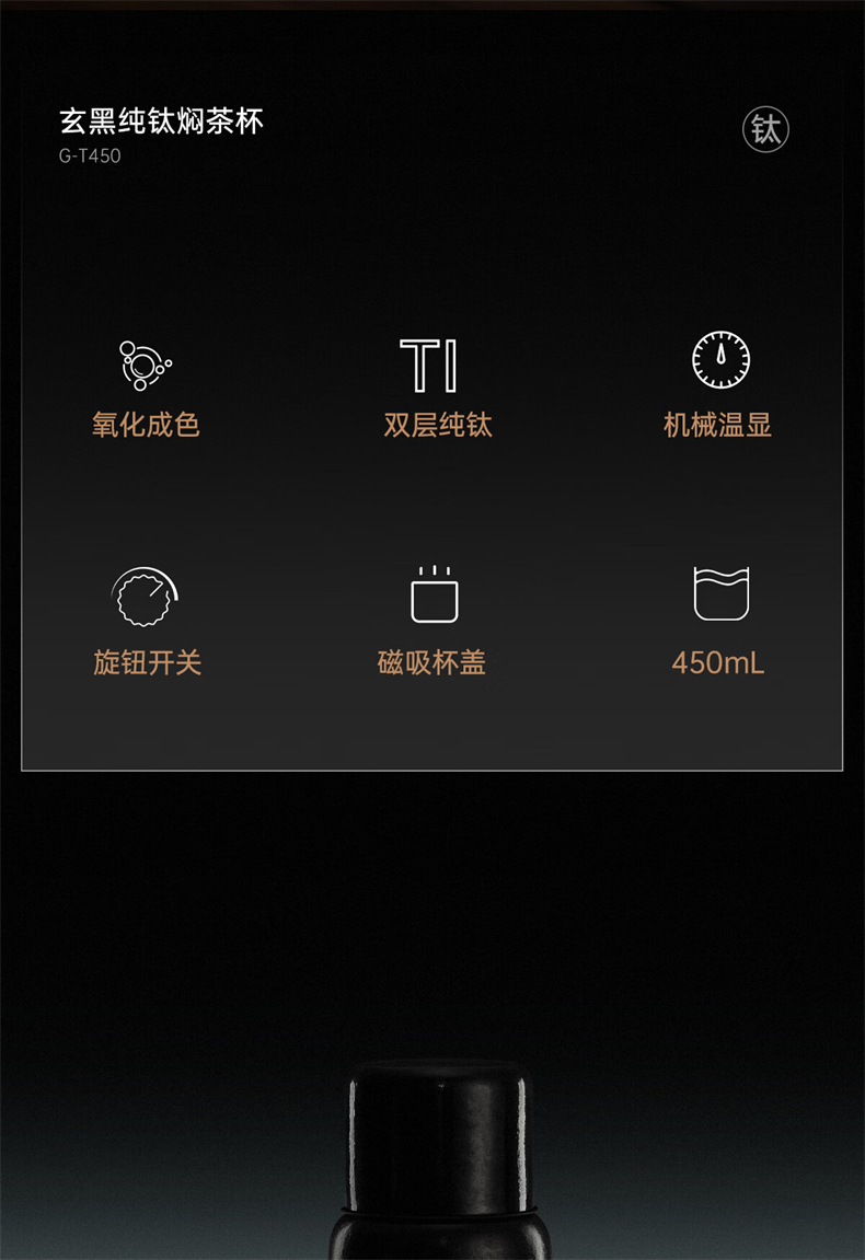 格丽斯 闷茶杯 纯钛 保温杯 钛杯 450ml