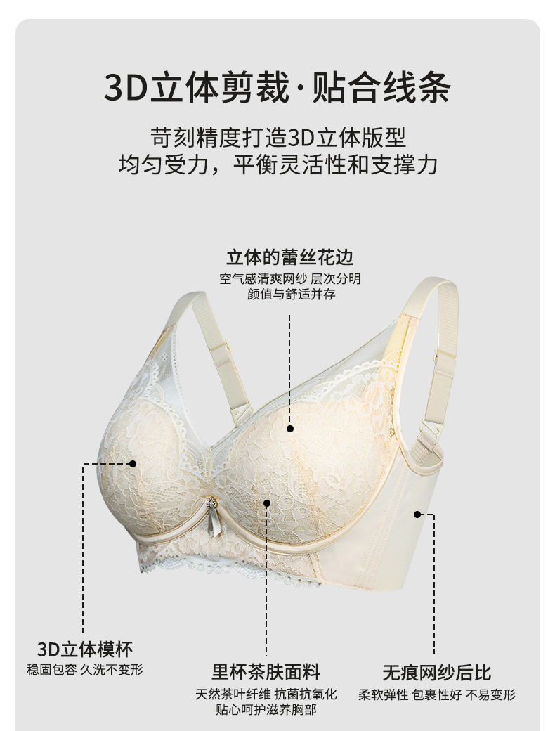 【49元1件】调整聚拢型性感蕾丝花边小胸显大防下垂收副乳无钢圈塑造胸型内衣-柏林回忆