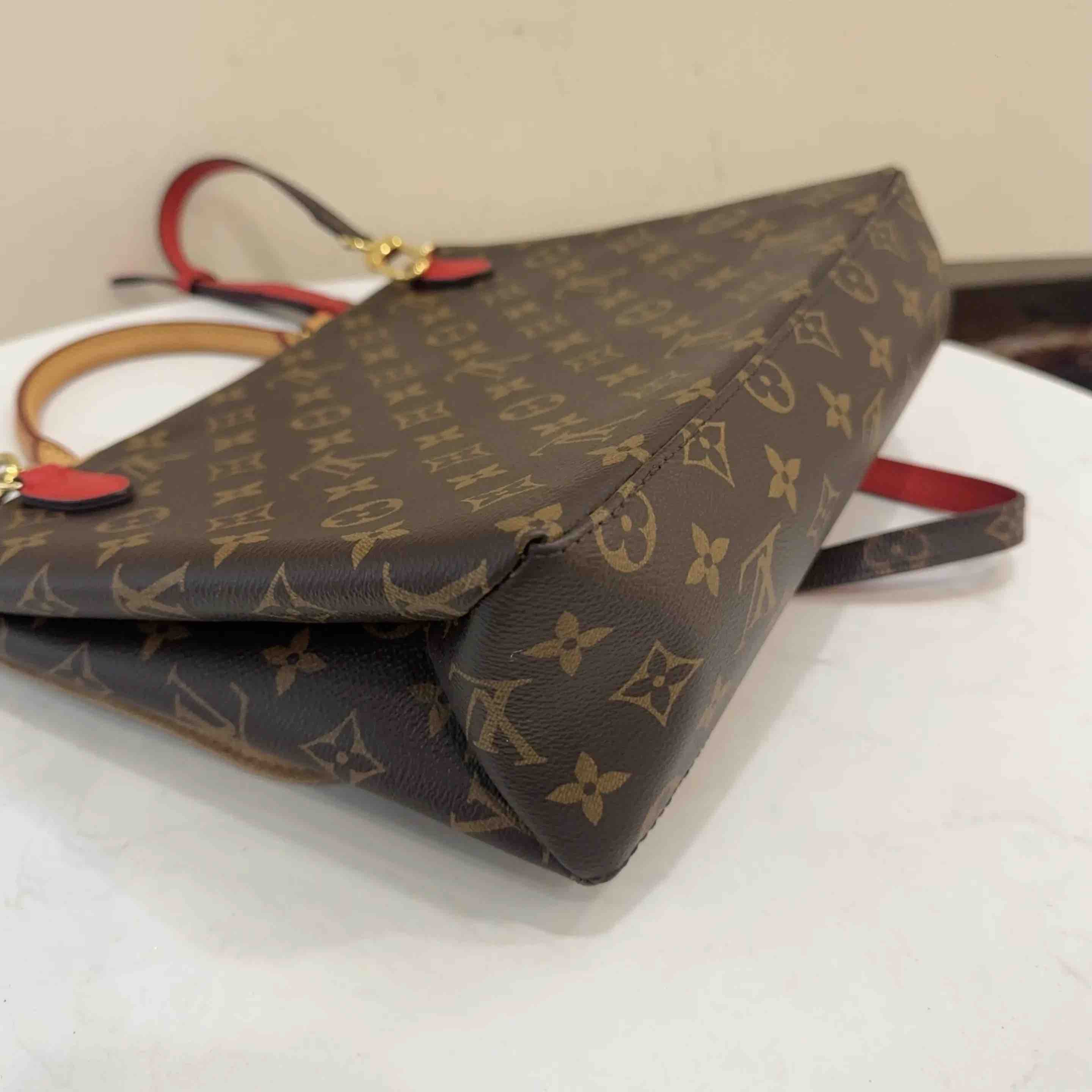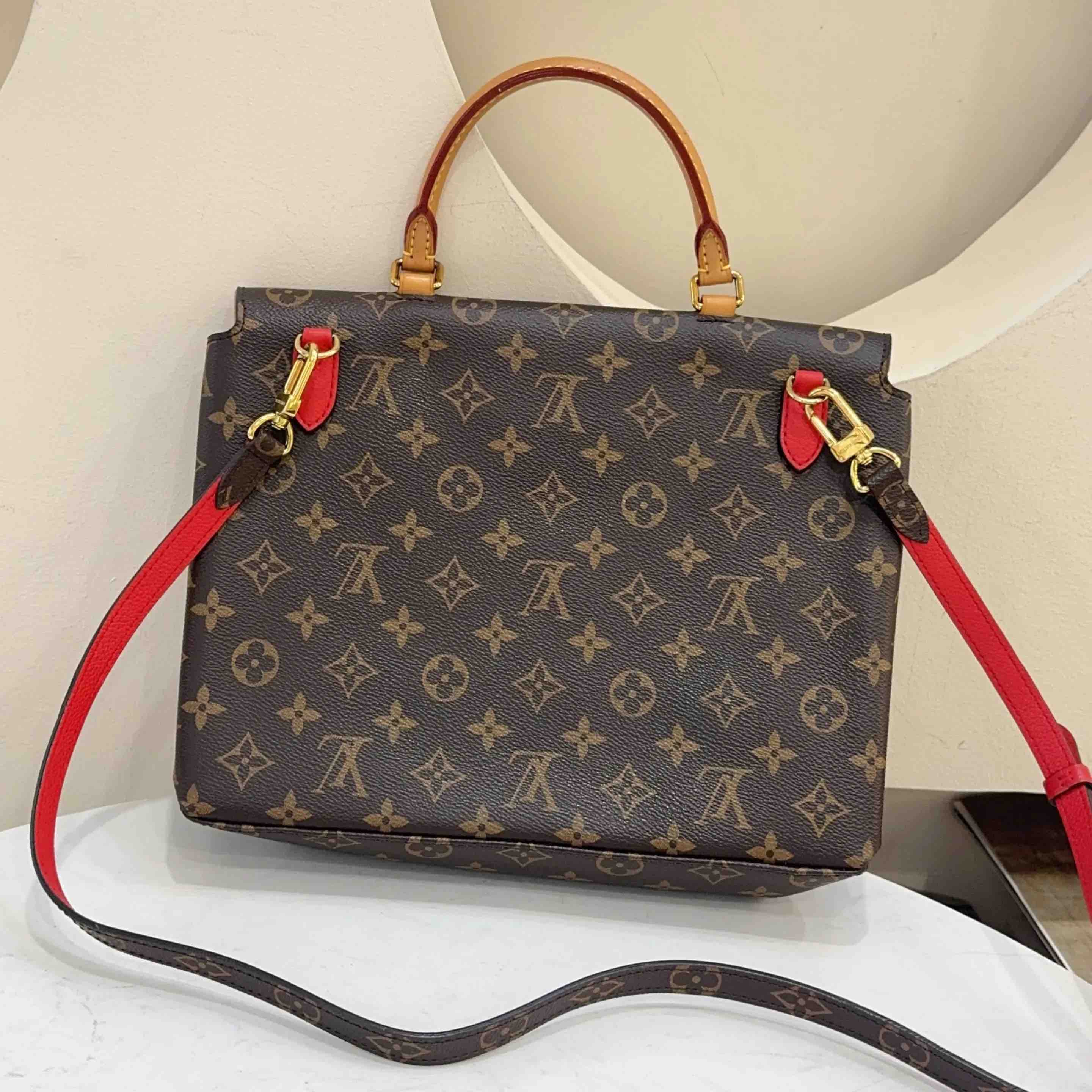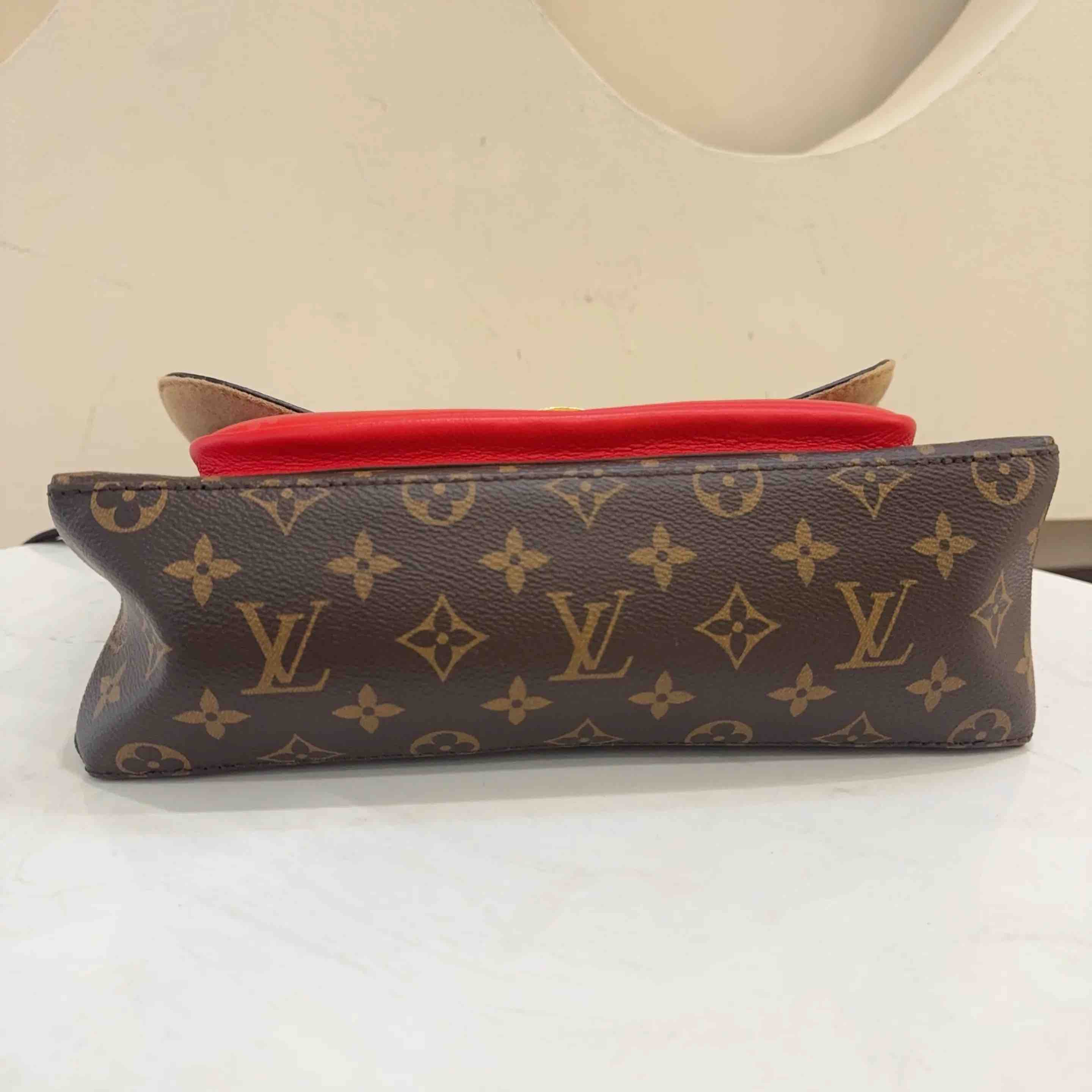 【商品详情】正品二手 LV Marignan 老花拼红 锁头 邮差包 👀 95新 28x22 配件:肩带。金属正常使用感。 情人节限定