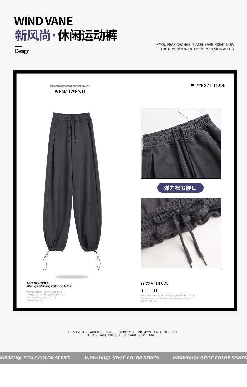 「8色可选!春夏新款」美式运动裤子女春秋束脚宽松阔腿裤垂坠感休闲直筒小个子卫裤下装