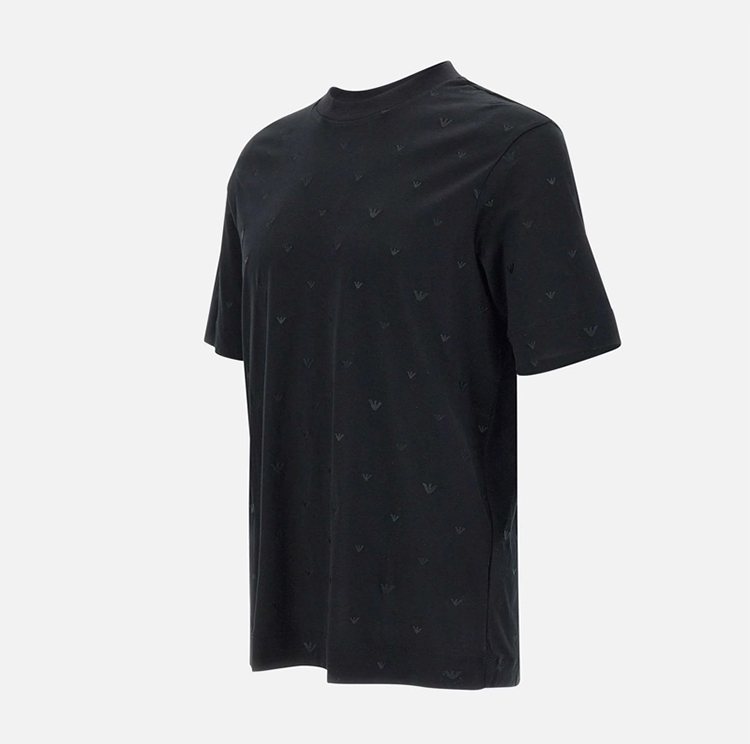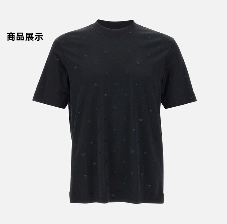 EMPORIO ARMANI 阿玛尼 男士微型老鹰徽标刺绣莱赛尔混纺圆领短袖T恤 黑色 EM001400 AF10017 FC185