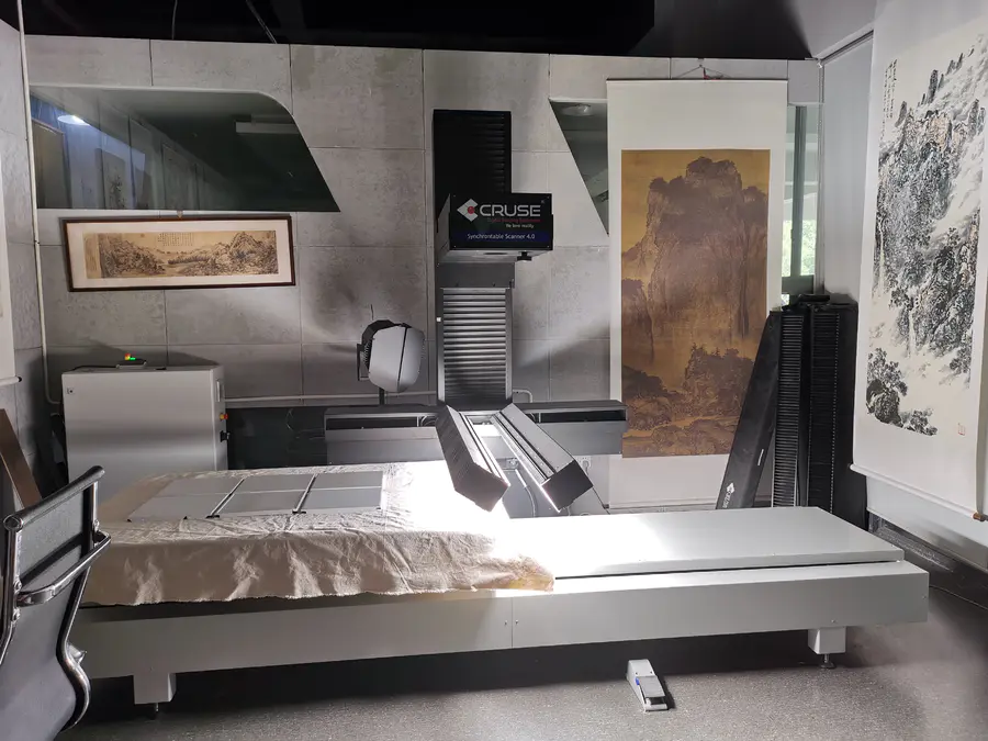 1、采用昂贵的德国CRUSE高解析大平台设备,以8亿像素的高精度对原画进行扫描,获取大容量的原始数据资料。