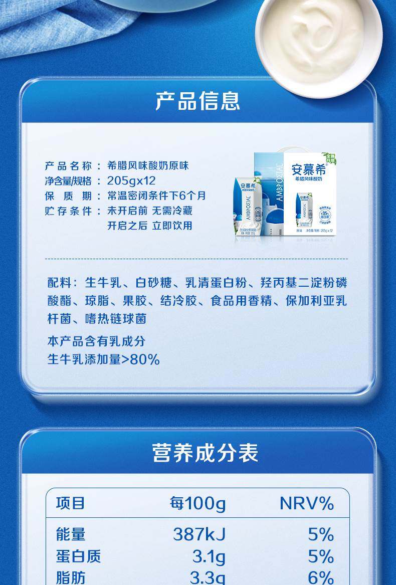安慕希 希腊风味酸奶原味礼盒205g*12