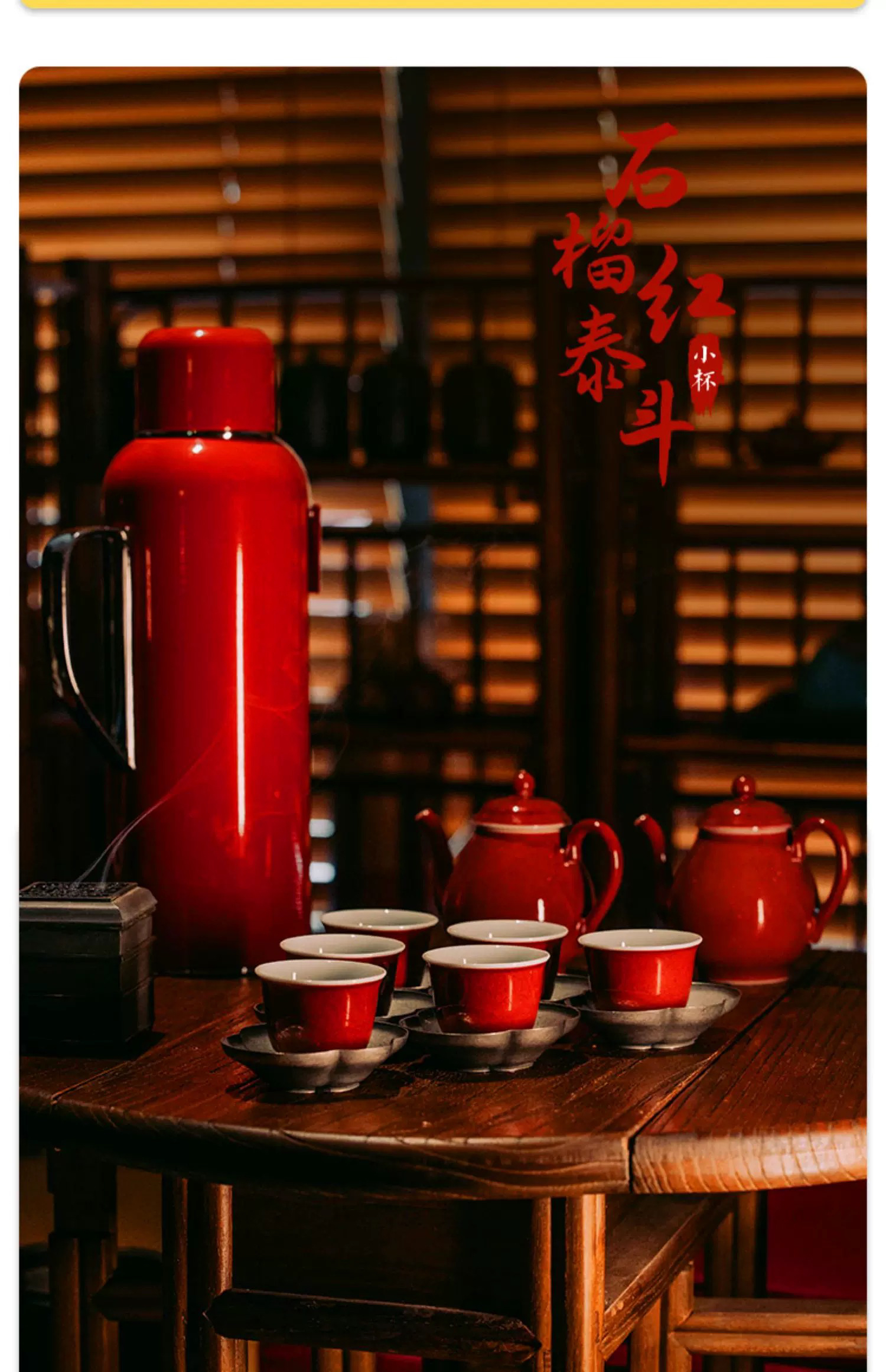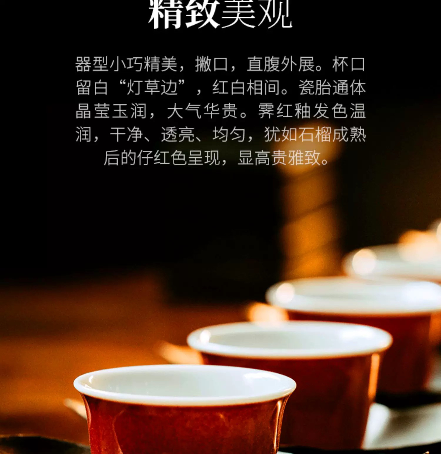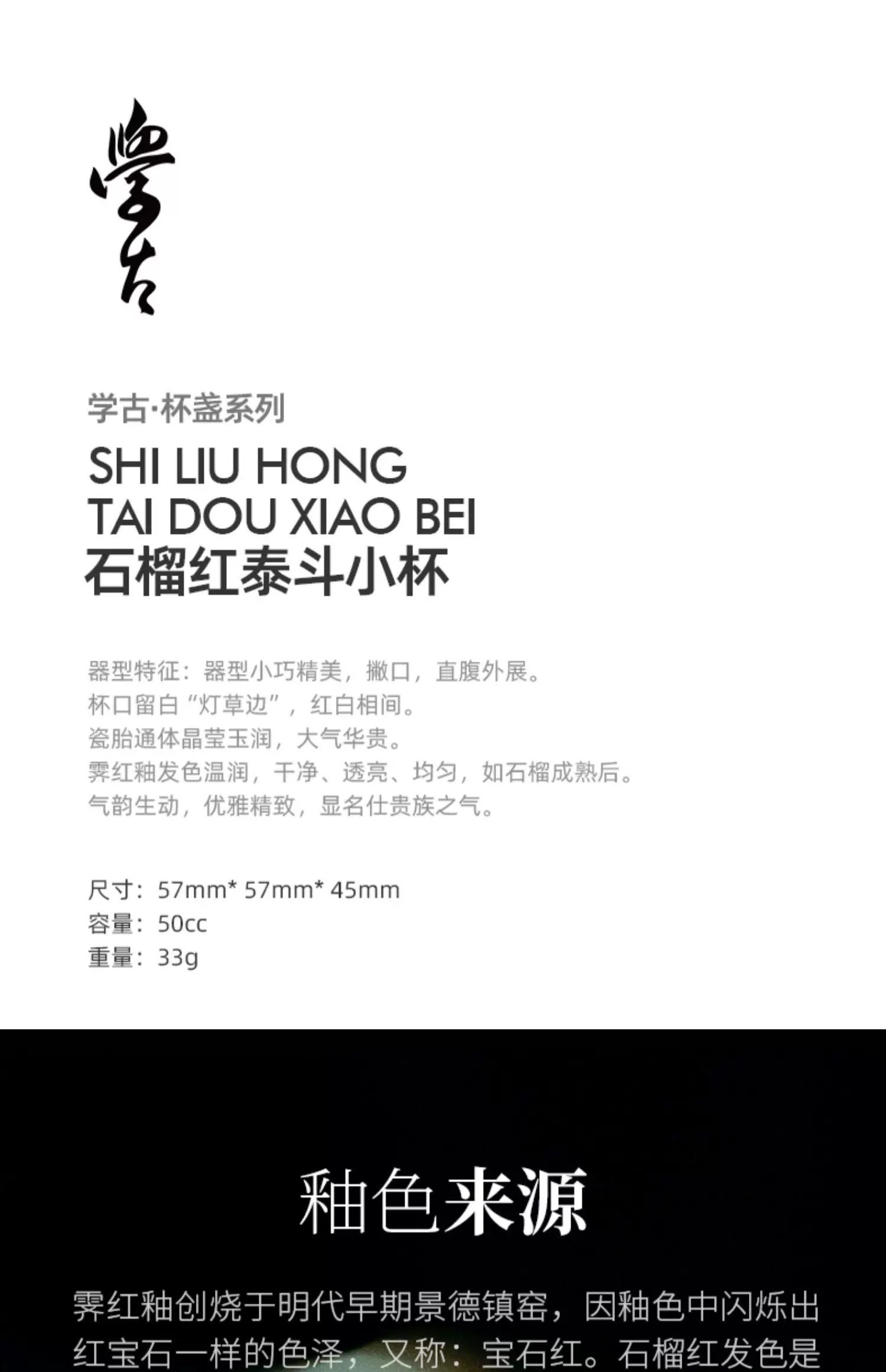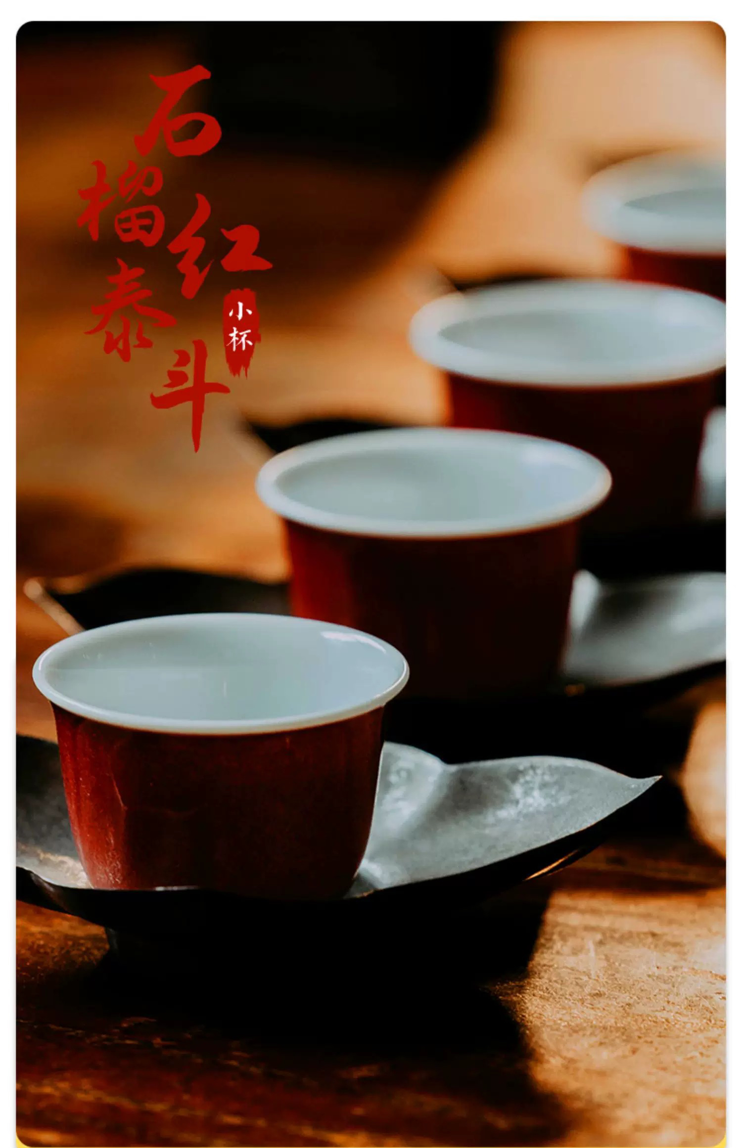 学古|石榴红泰斗小杯 手工薄胎明代景德镇霁红釉茶杯6只礼盒50ml