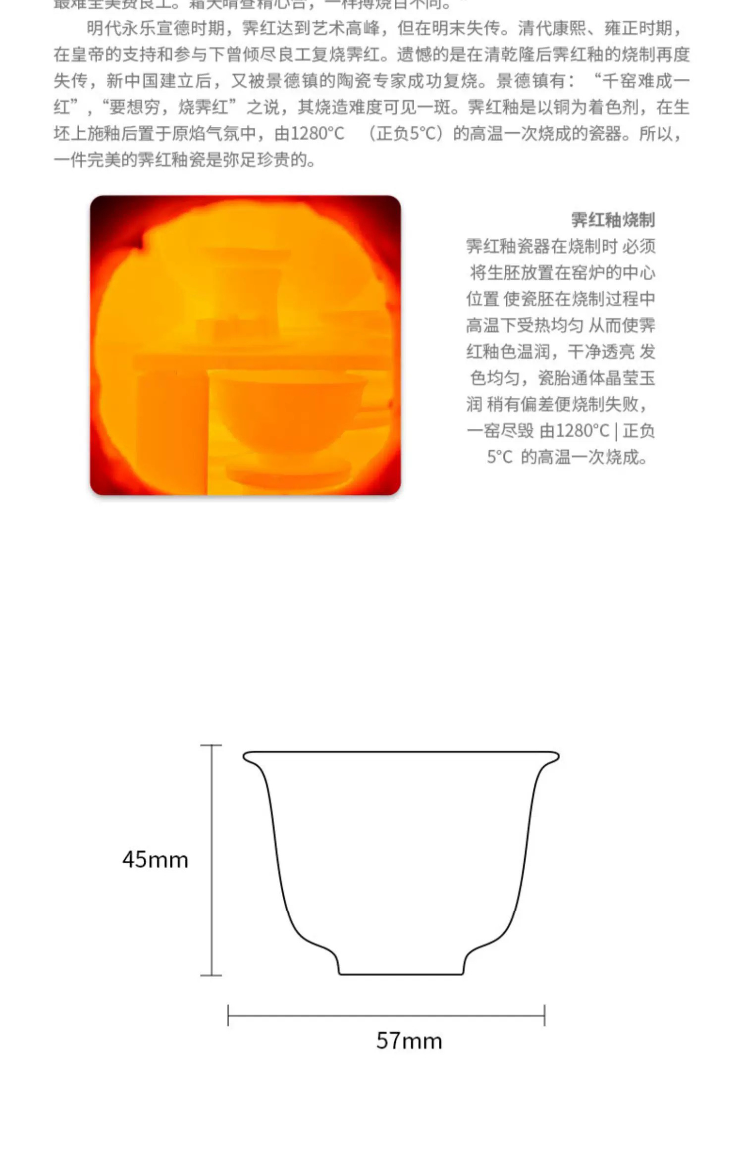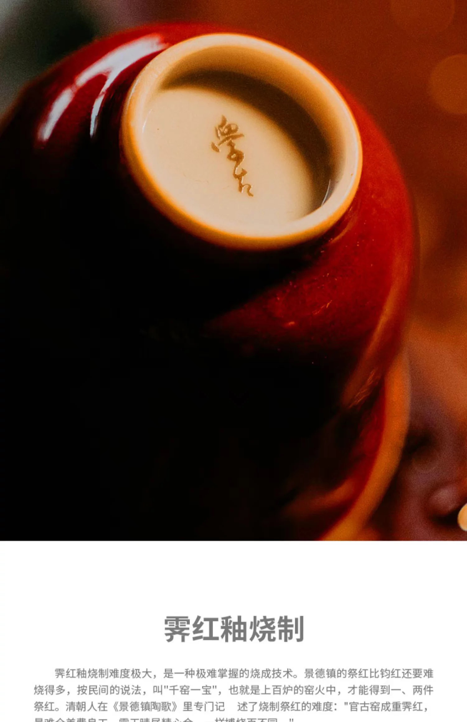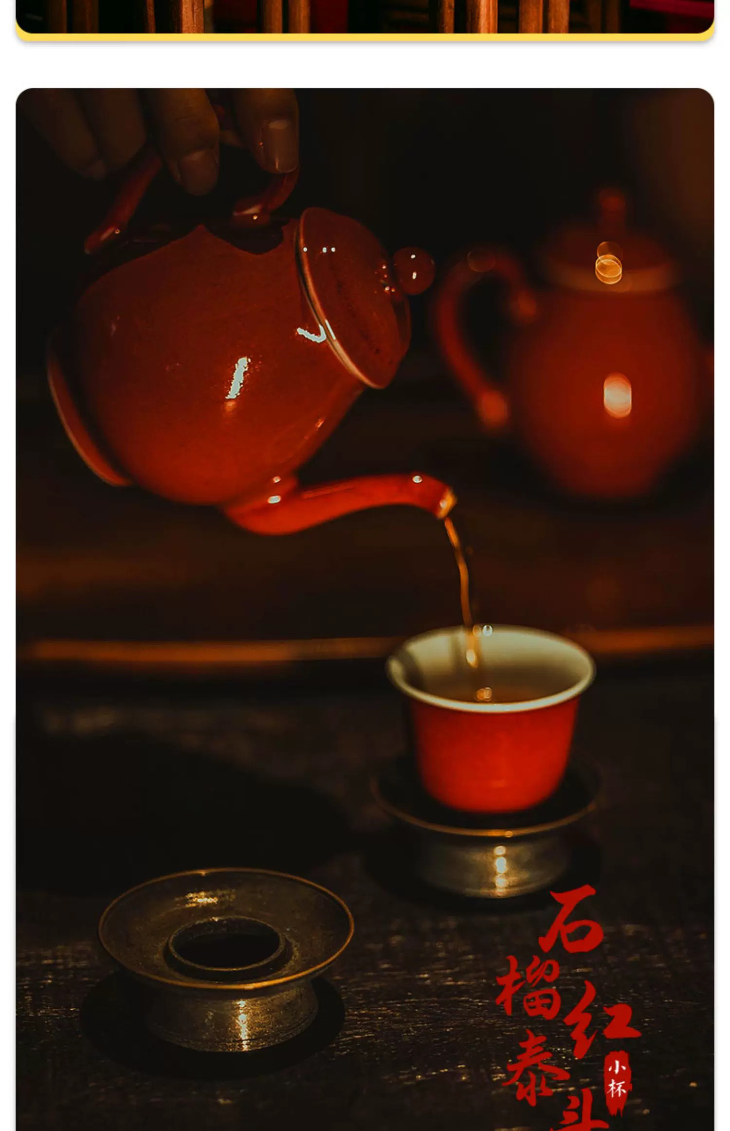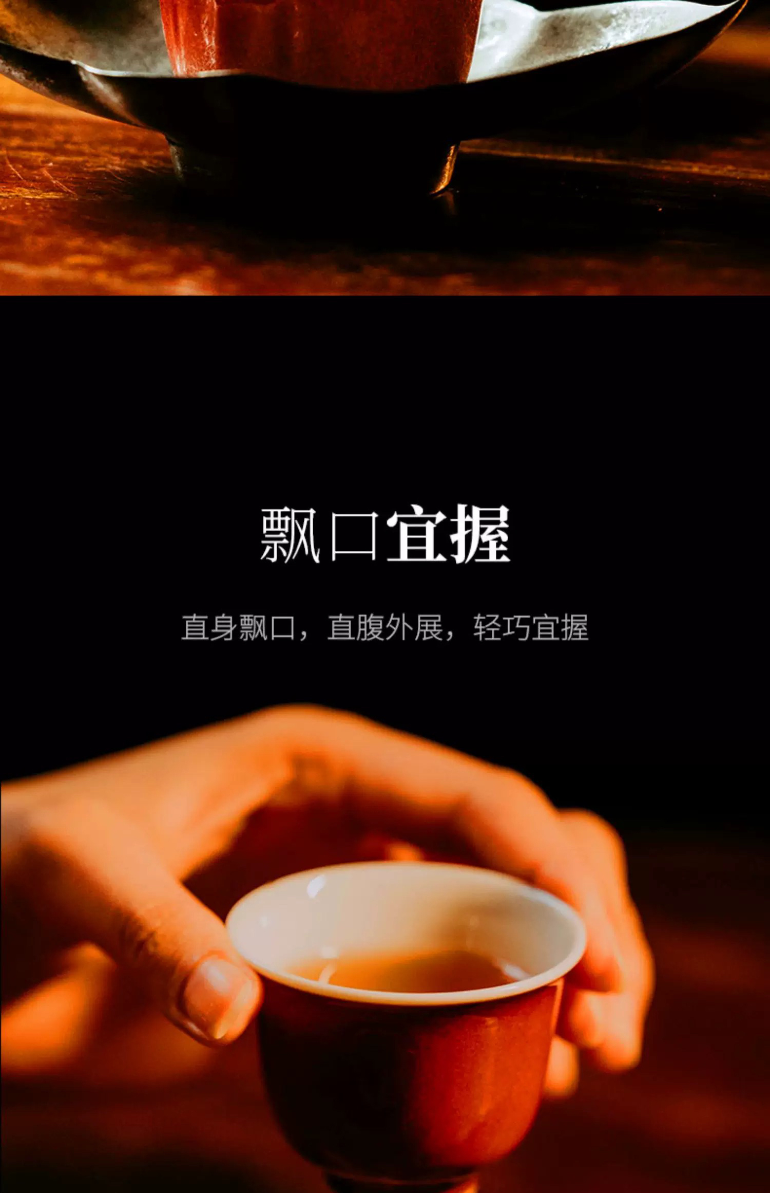 学古|石榴红泰斗小杯 手工薄胎明代景德镇霁红釉茶杯6只礼盒50ml