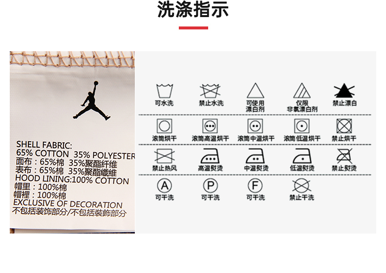 乔丹童衣男女儿童装正品秋毛圈百搭连帽卫衣帽衫 JD2142063