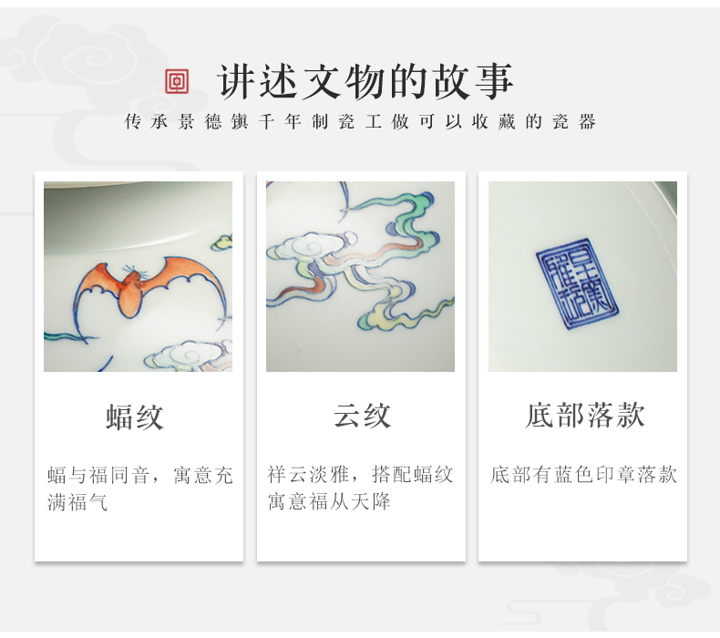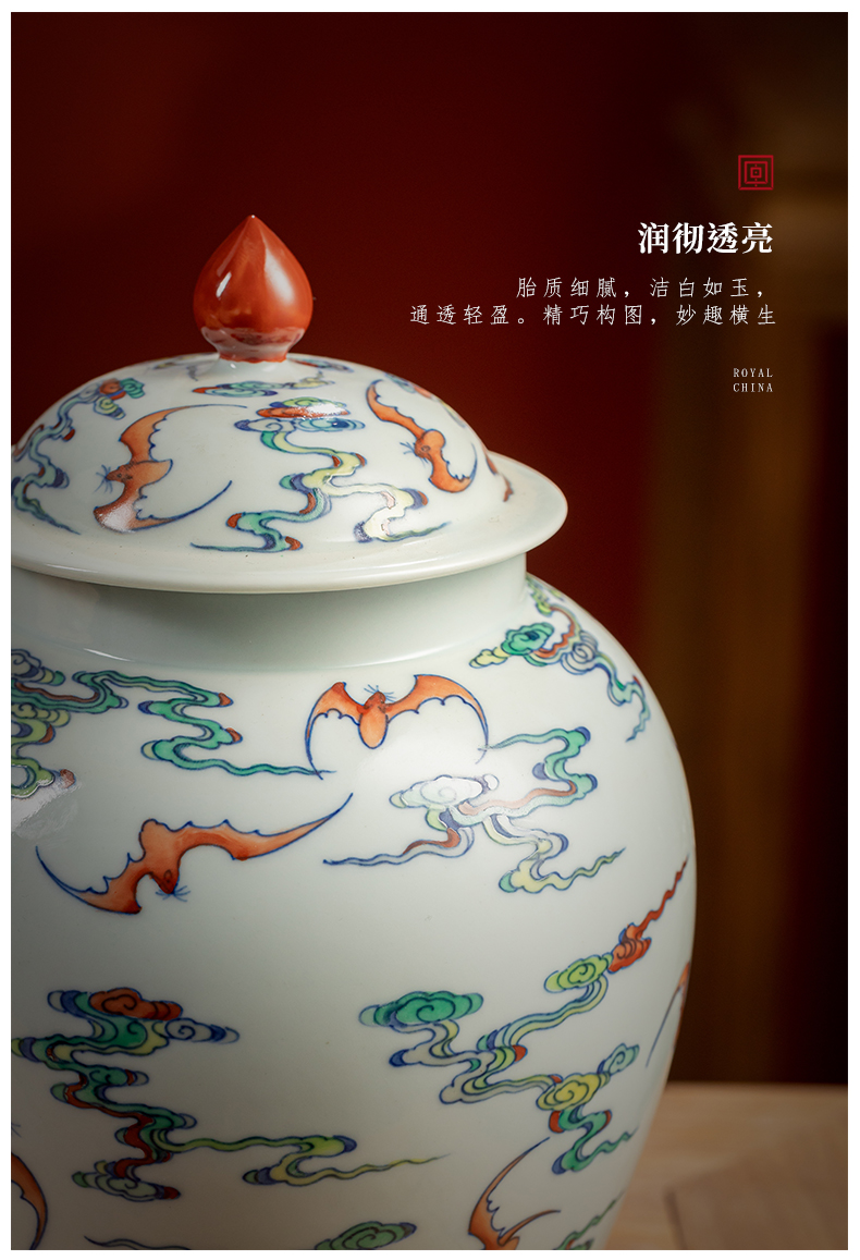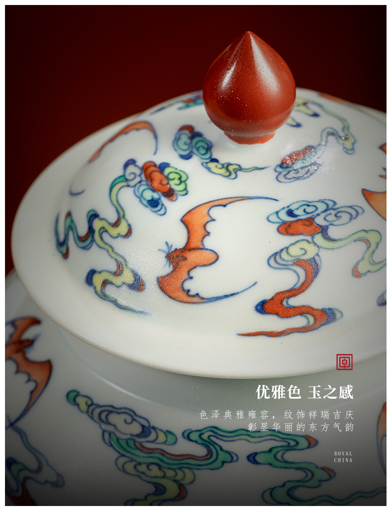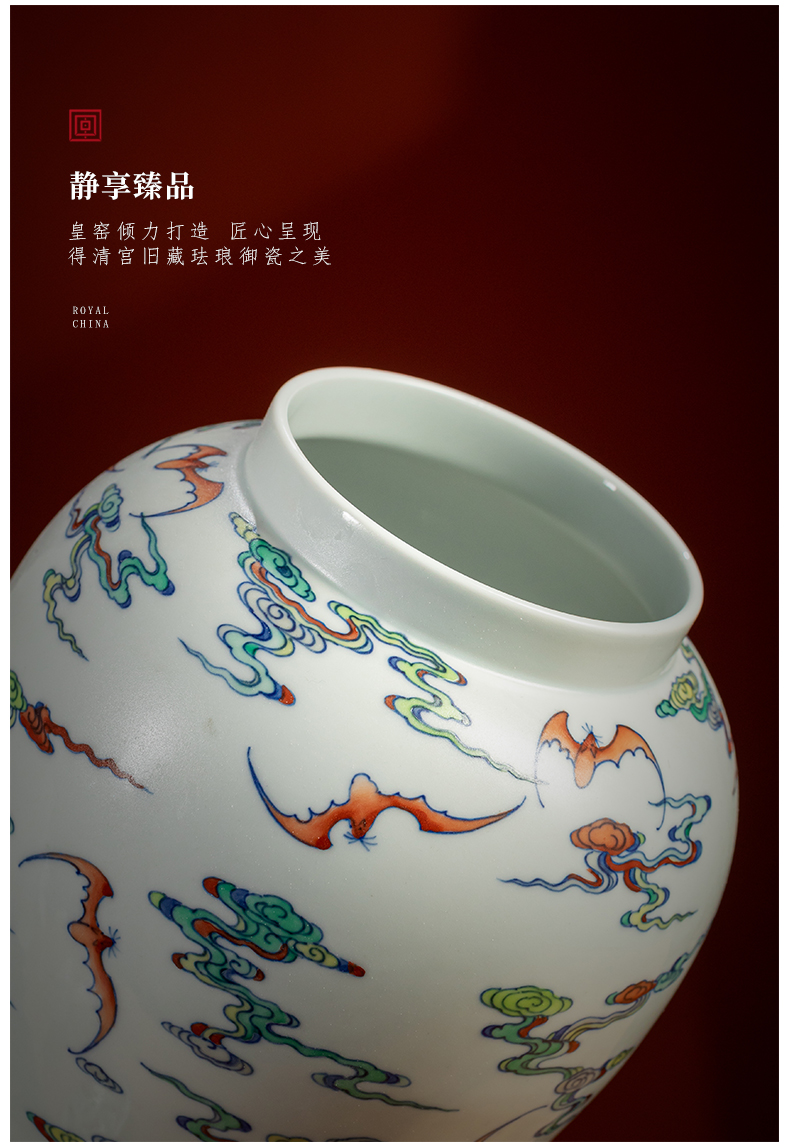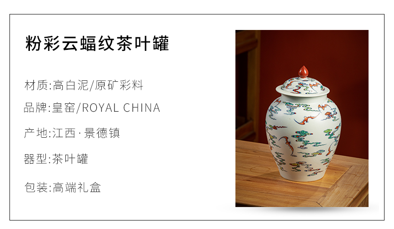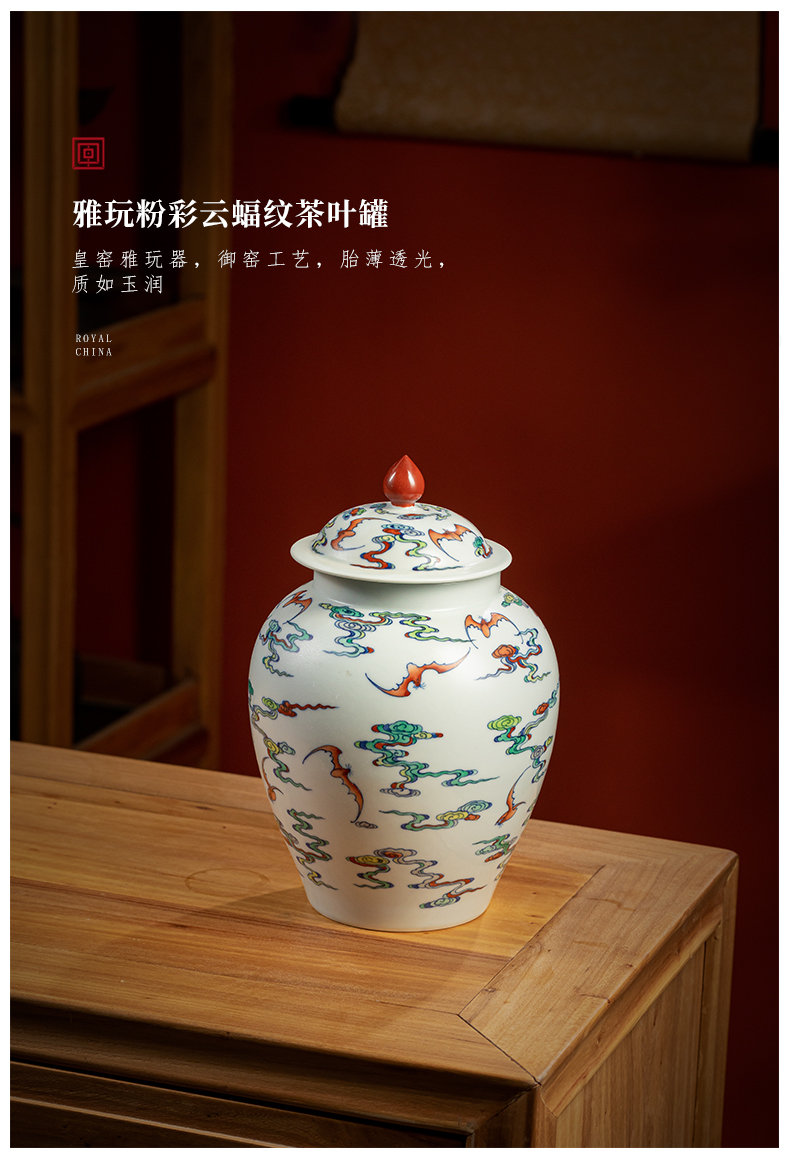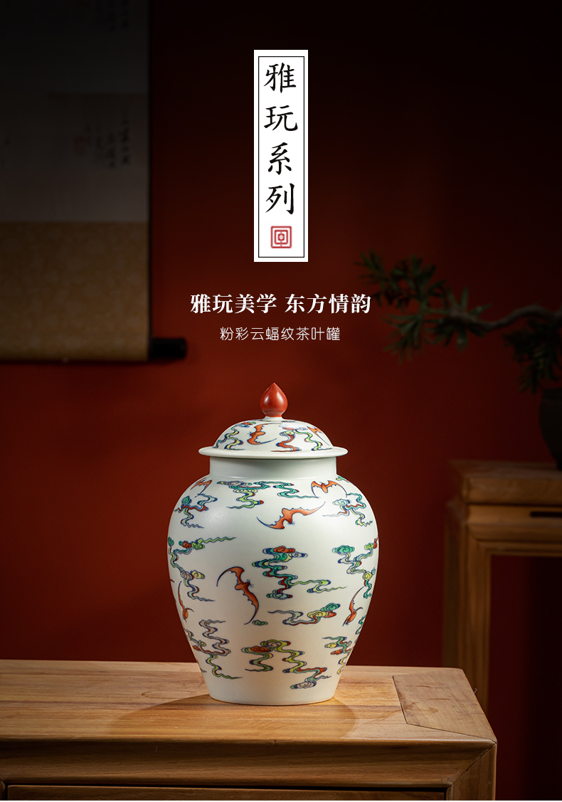 【皇窑】雅玩 手绘粉彩云蝠纹茶叶罐
