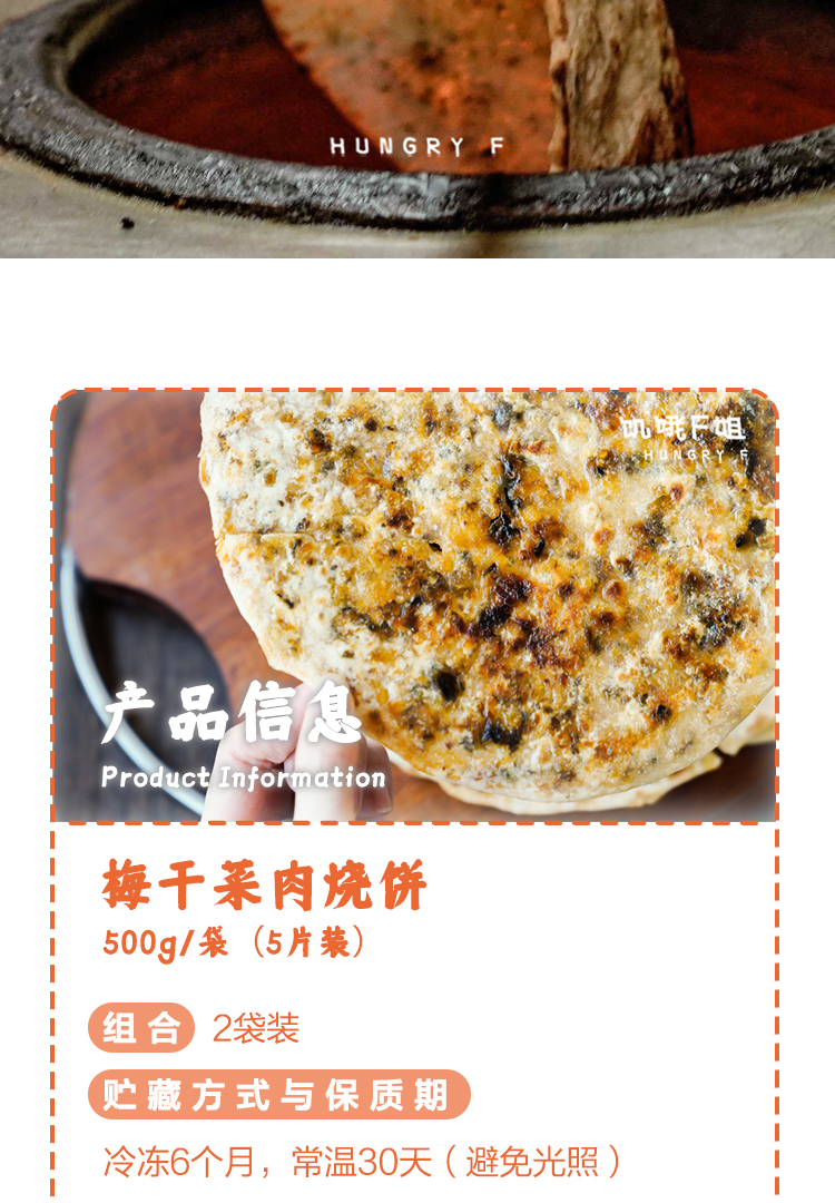 【詹厨】饥饿F姐·梅干菜肉烧饼 全新升级,木桶炭烤 还原老味道~原味/微辣2种口味,更有大小烧饼可供选择180g/500g