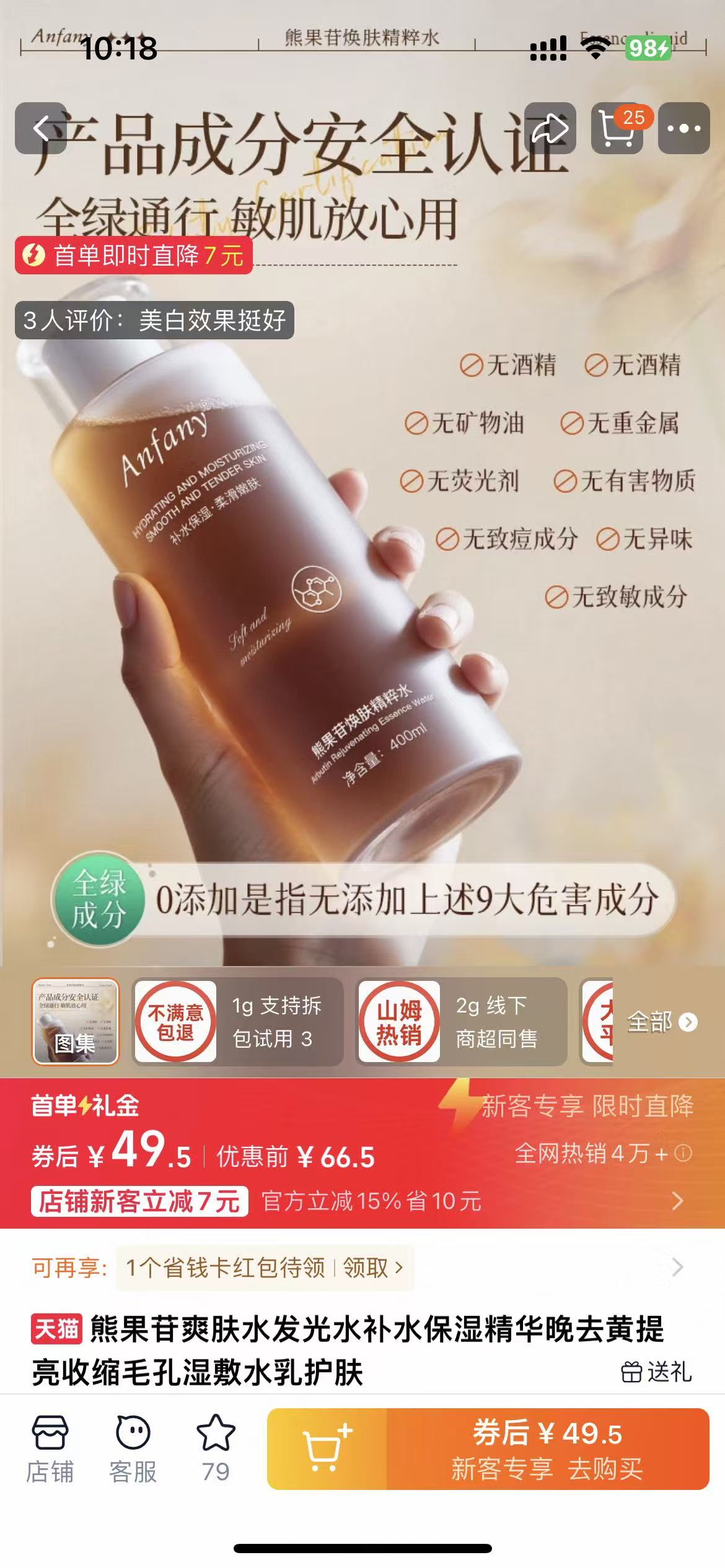 祛黄提亮真的牛 熊果苷焕肤精粹水400ml 炸裂好用的熬夜发光水!黄黑皮弯道大超车 妆前/晒后/熬夜后湿敷,第二天皮肤像开了灯一样