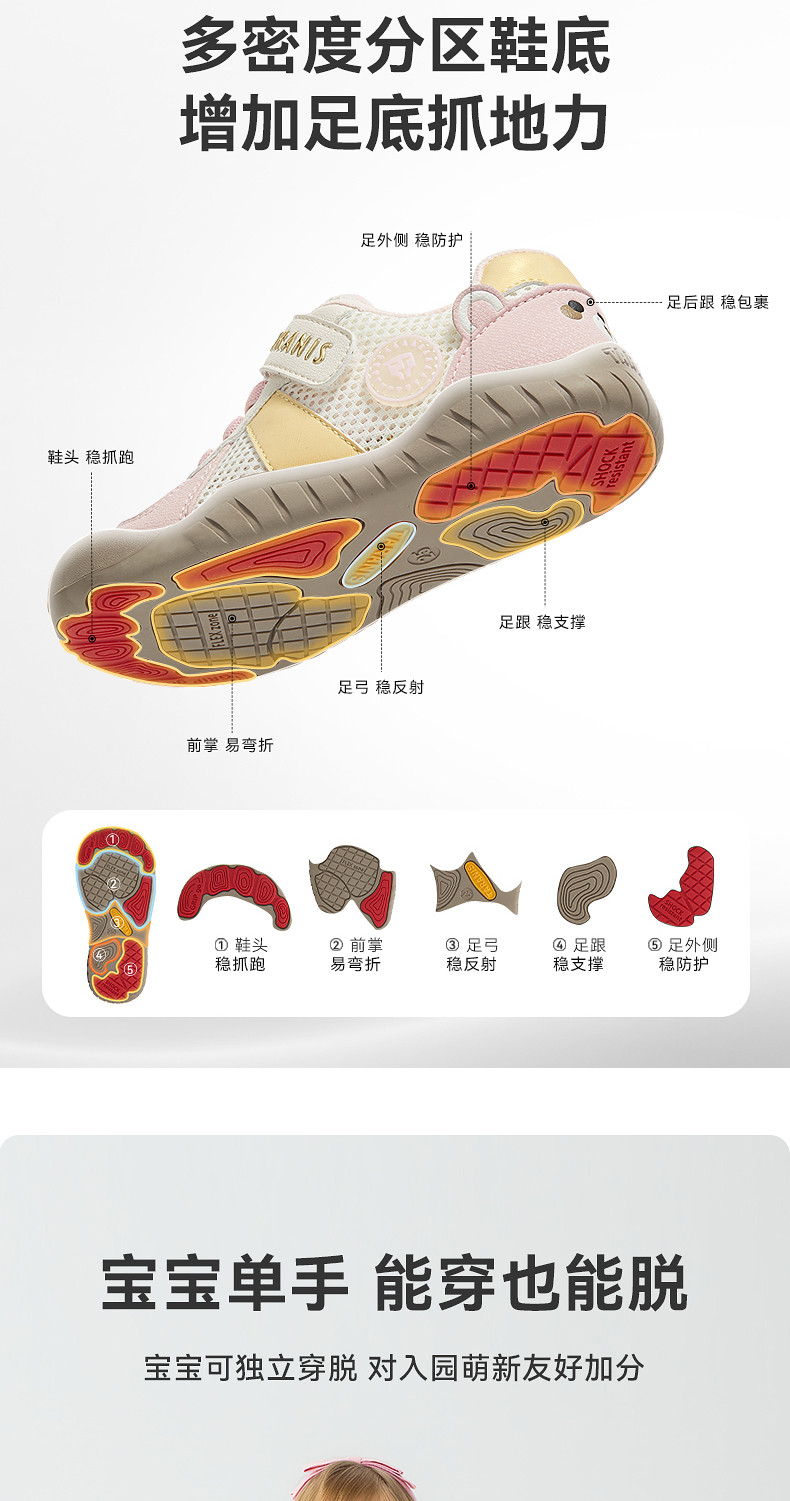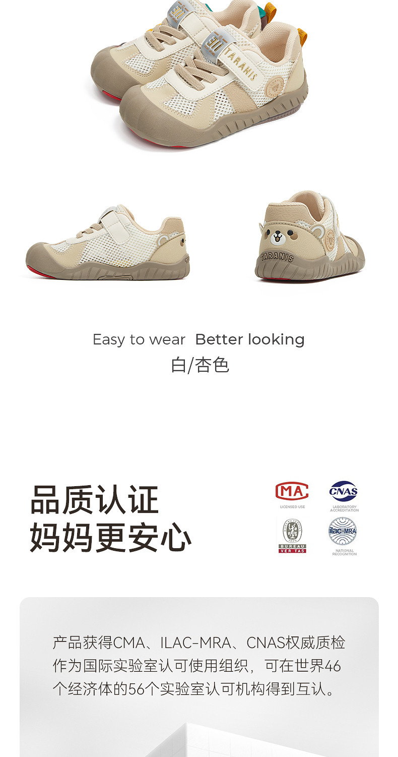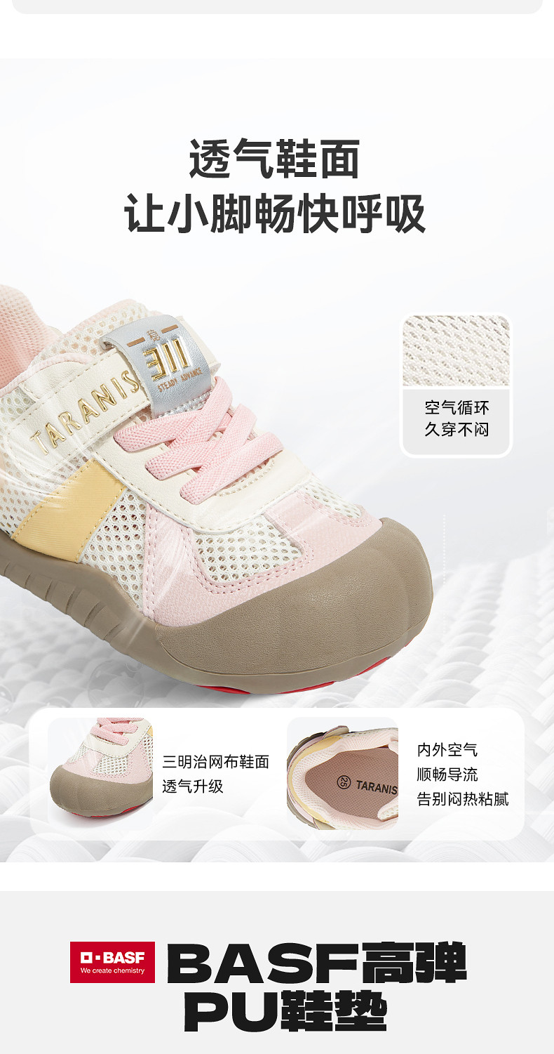 泰兰尼斯童鞋春季新款女童幼儿园室内外鞋全场景男童学步入园板鞋T02X6A8724
