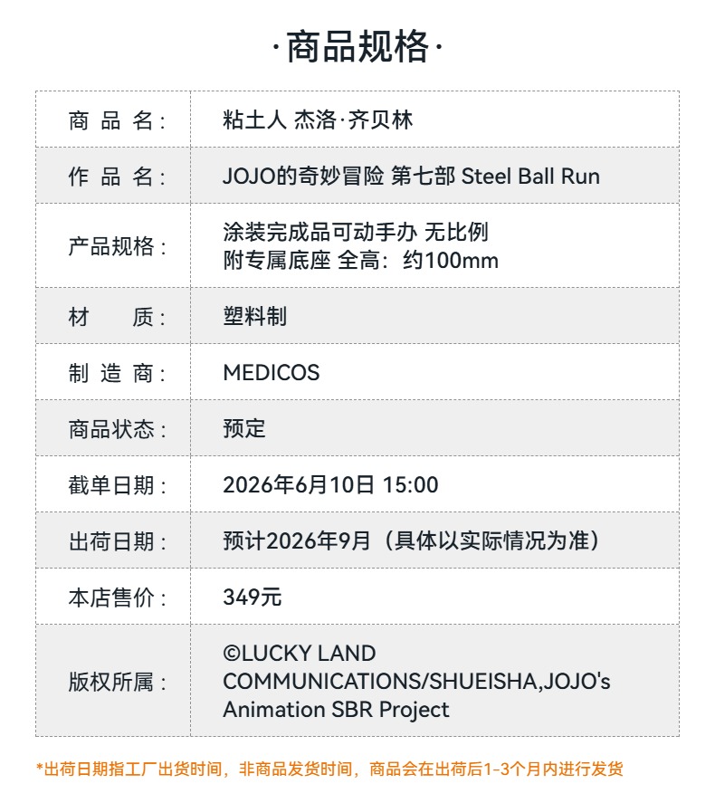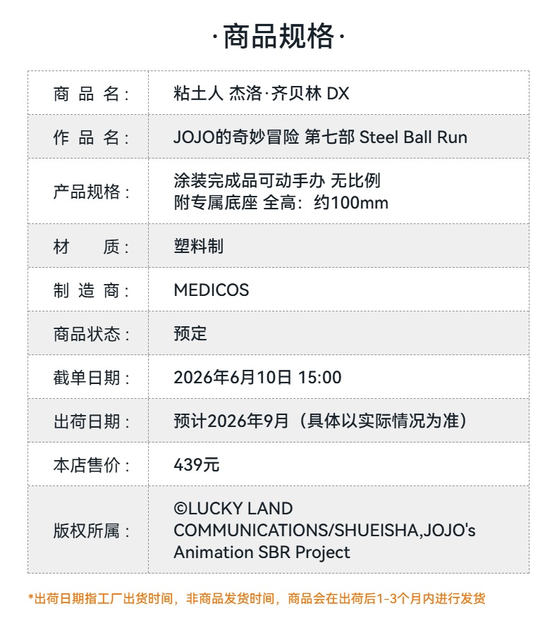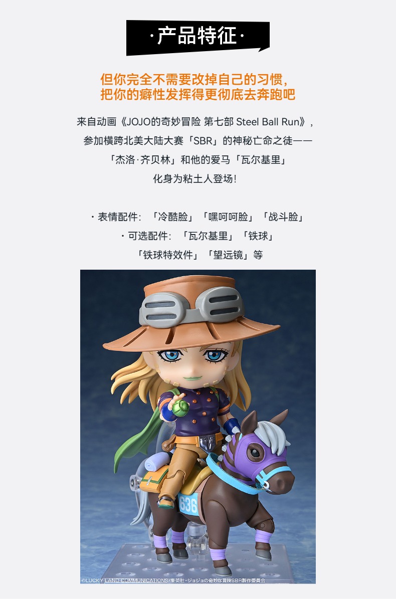 【GSC预售定金】粘土人 杰洛·齐贝林 DX版/普通版 附官方限定特典 JOJO的奇妙冒险 第七部 Steel Ball Run