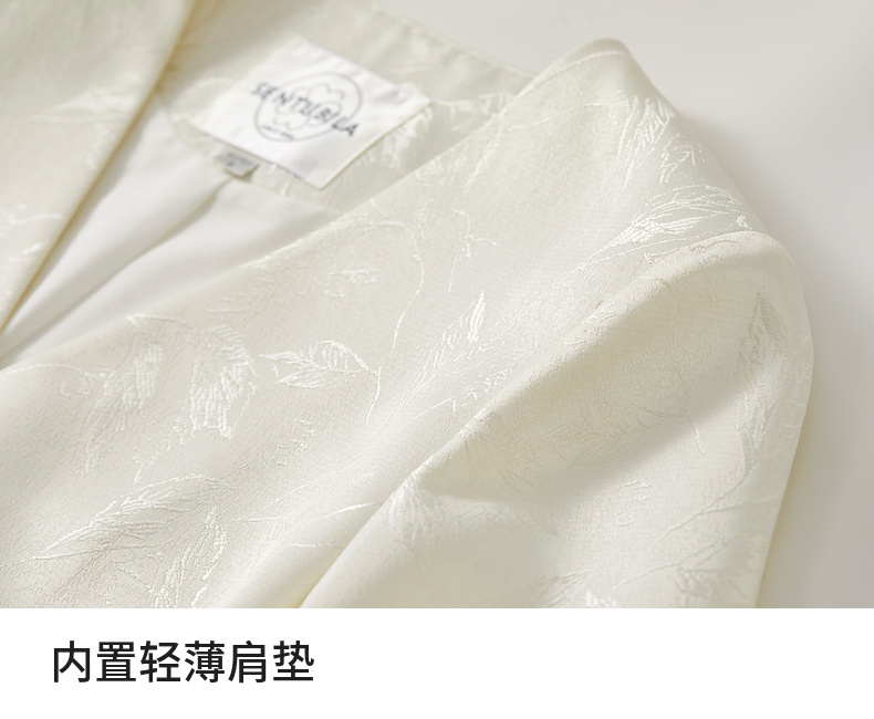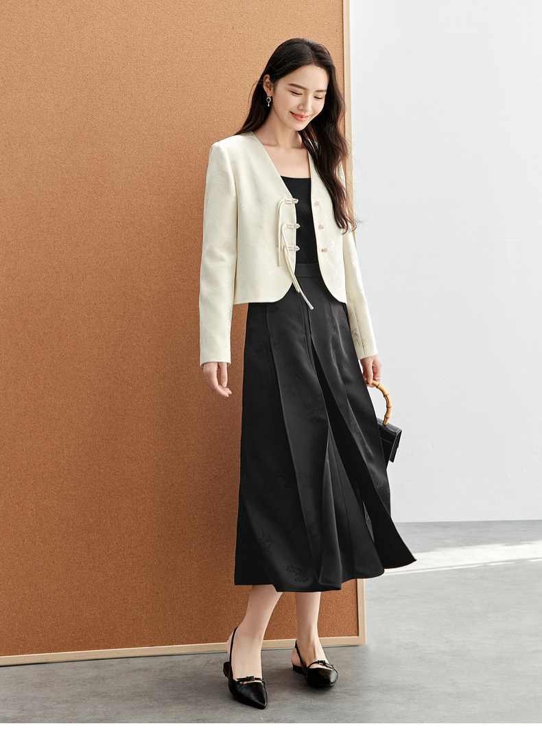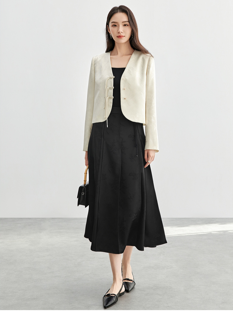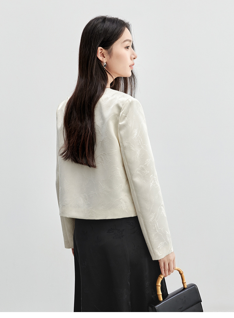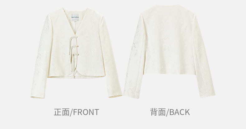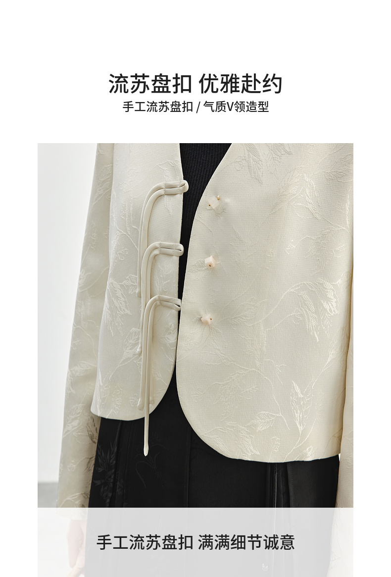 【内购】国风新中式树叶提花肌理流苏盘扣V领带肩垫小香风外套-151W56167