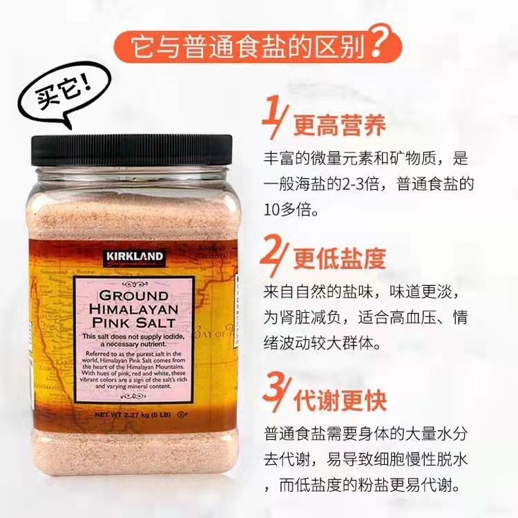 美国Kirkland喜马拉雅 已研磨玫瑰粉盐2.27KG(无碘)