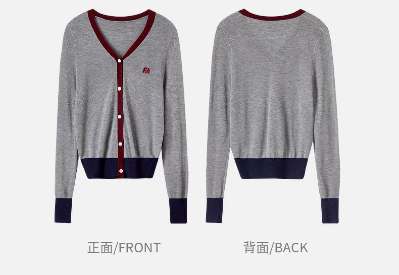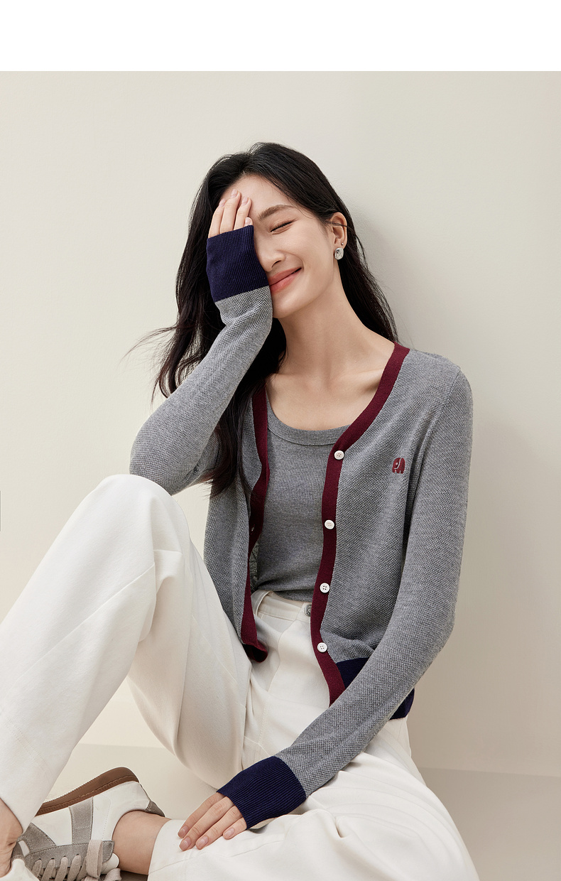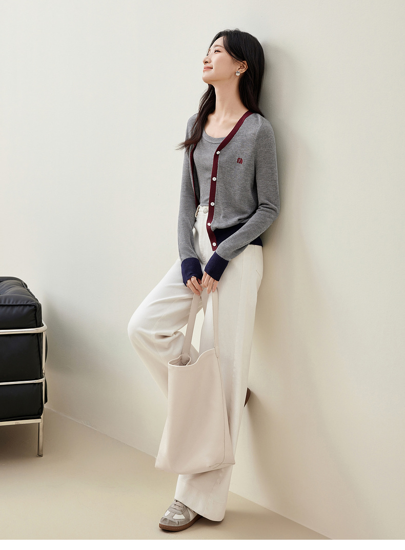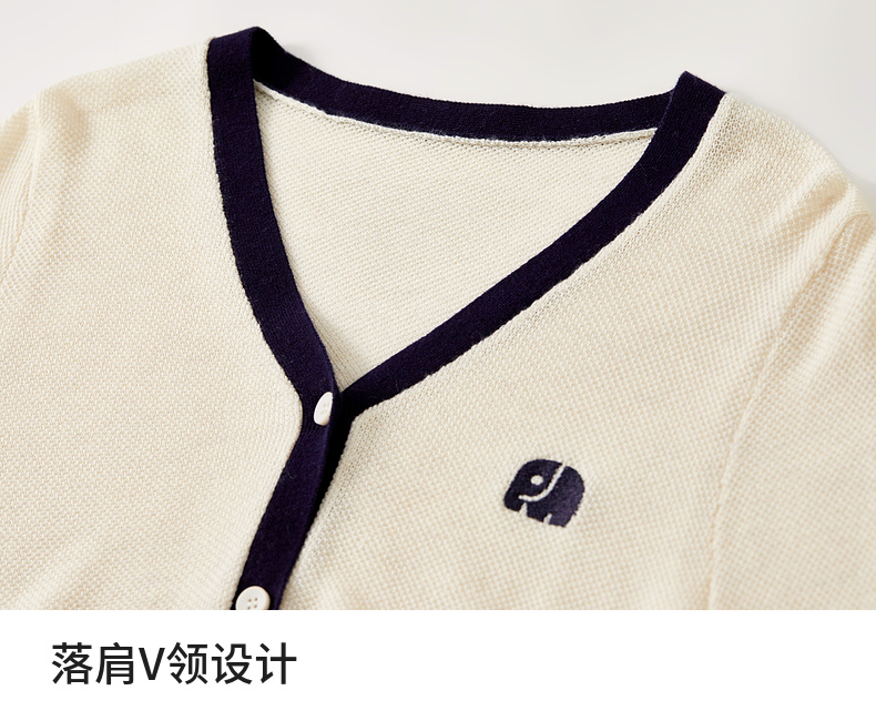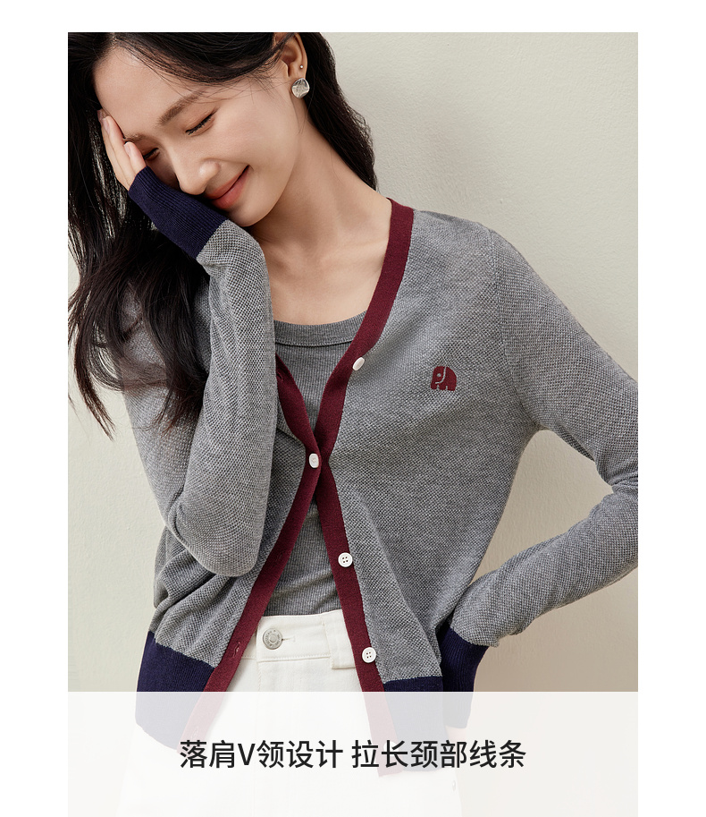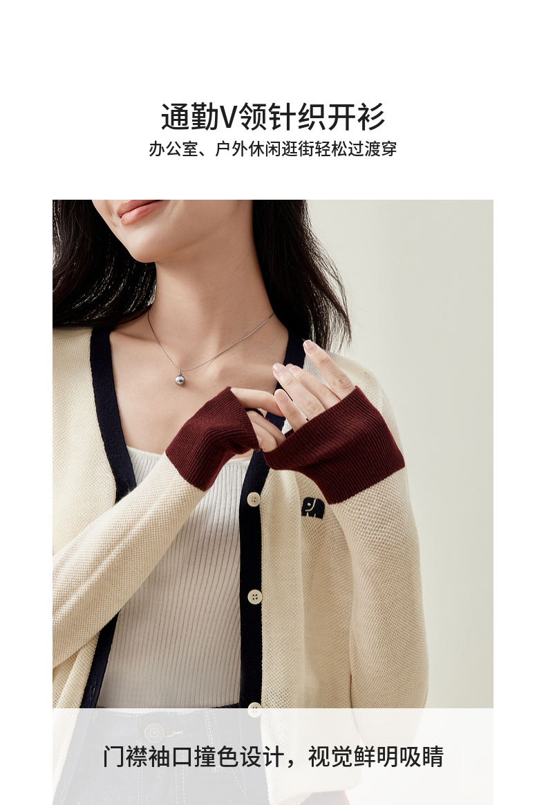 【内购】都市通勤落肩V领H型修身撞色针织开衫-W51H58420