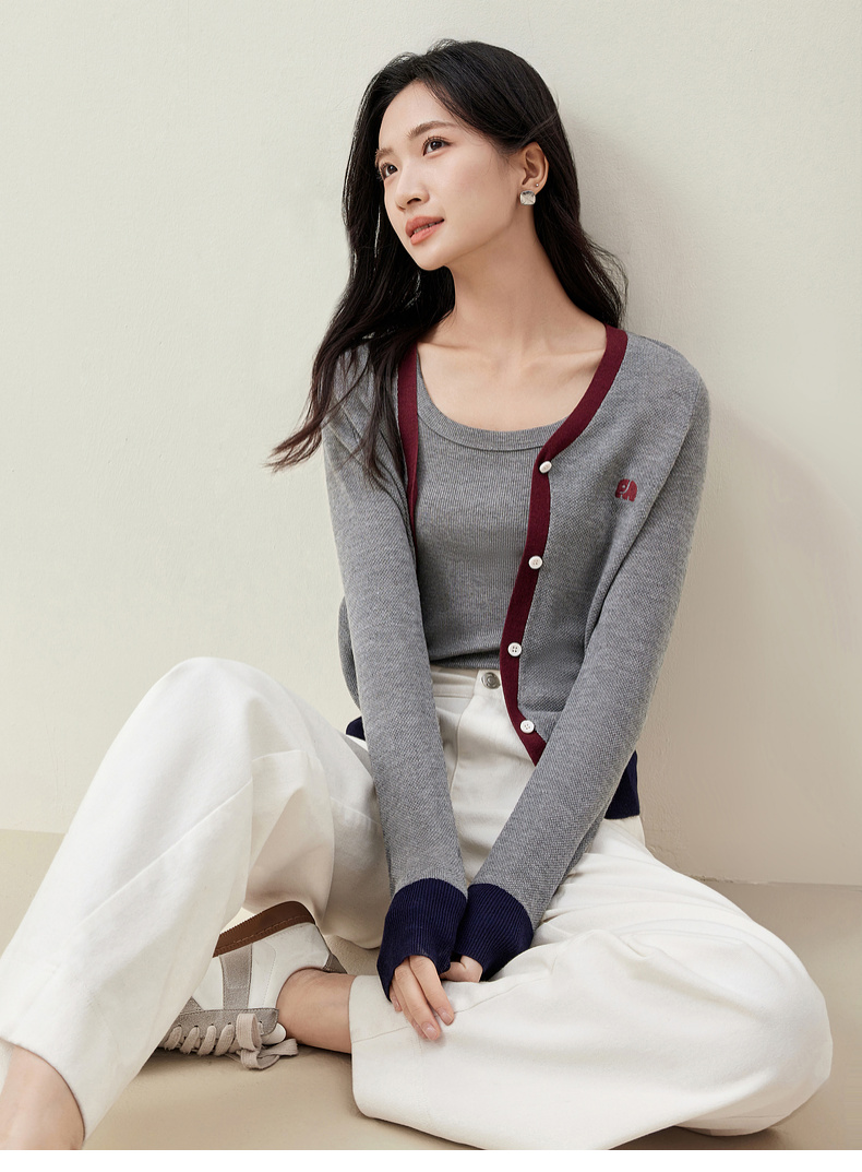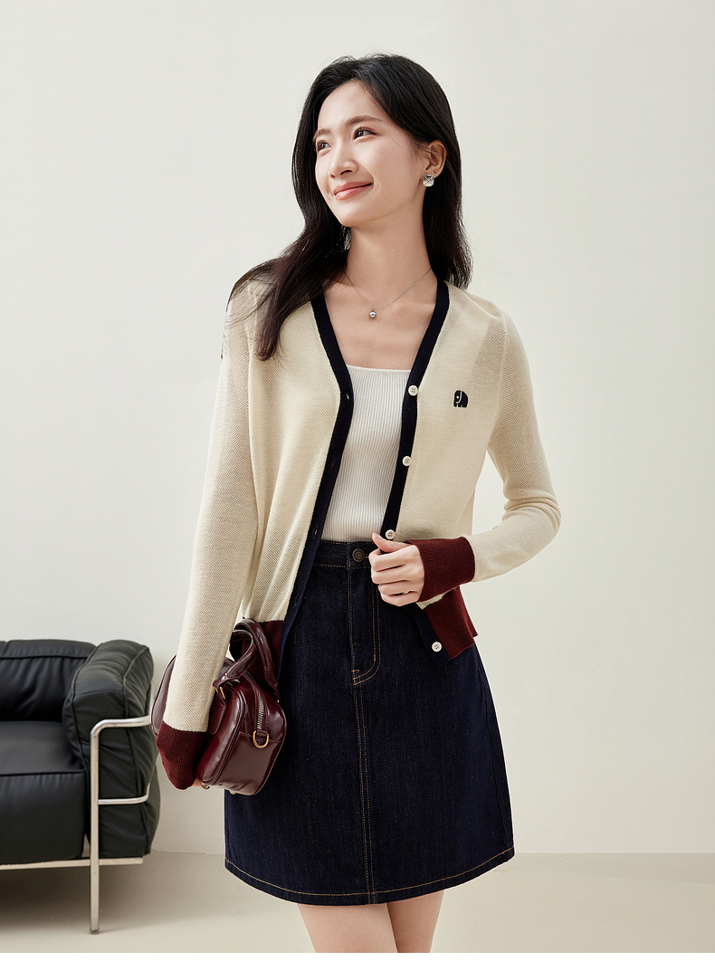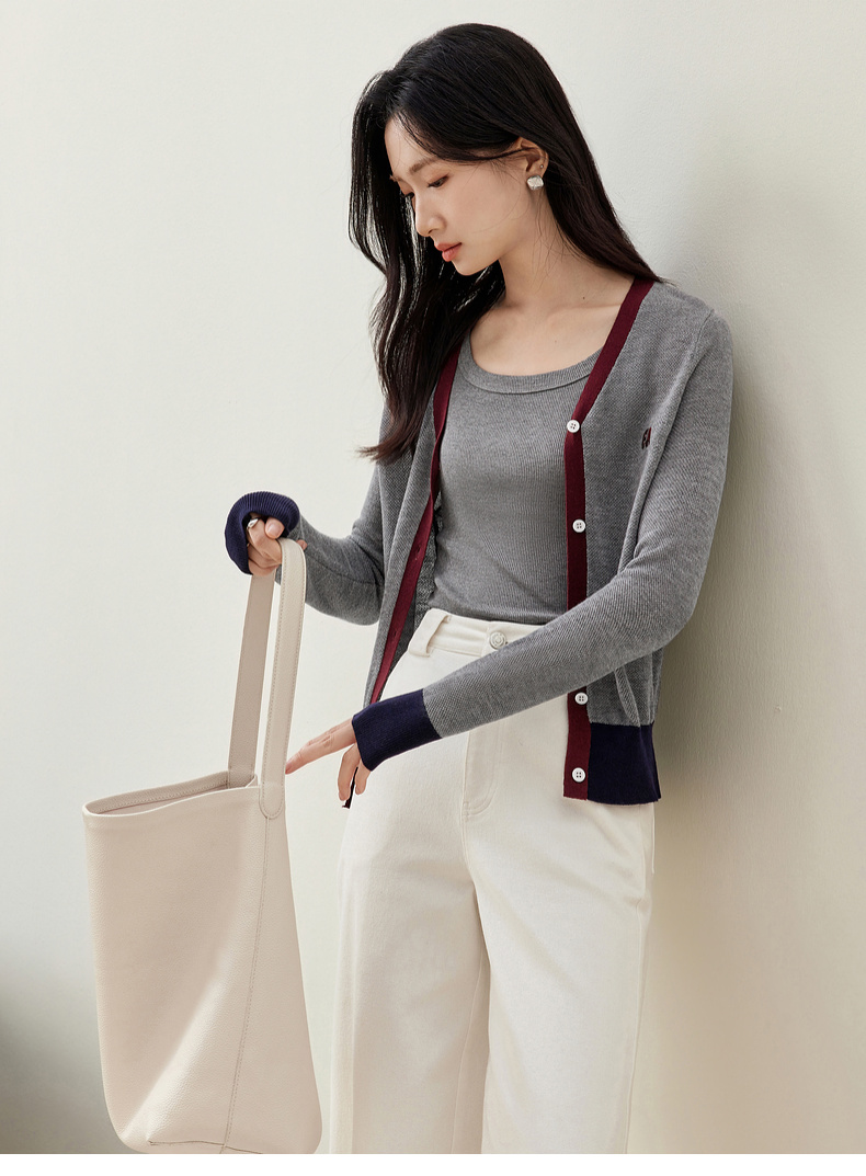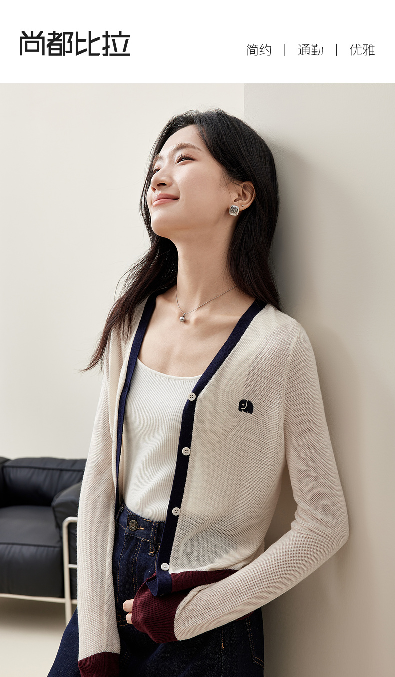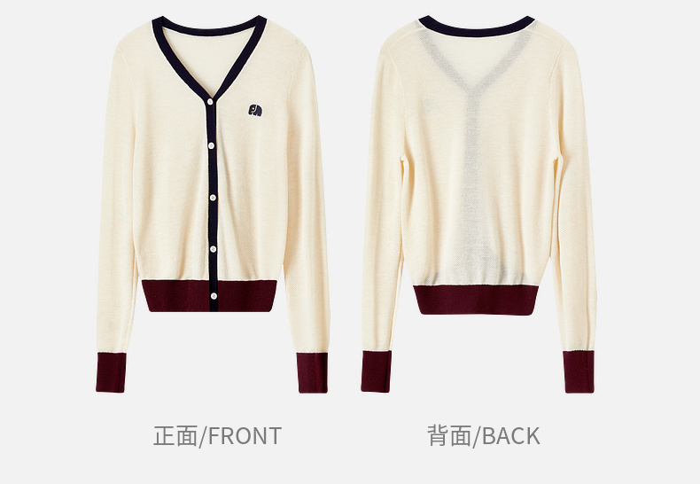 【内购】都市通勤落肩V领H型修身撞色针织开衫-W51H58420