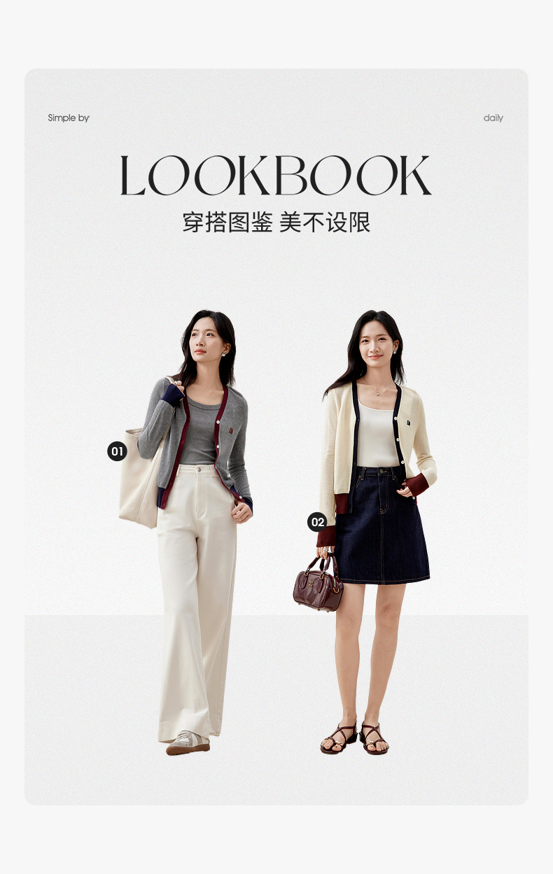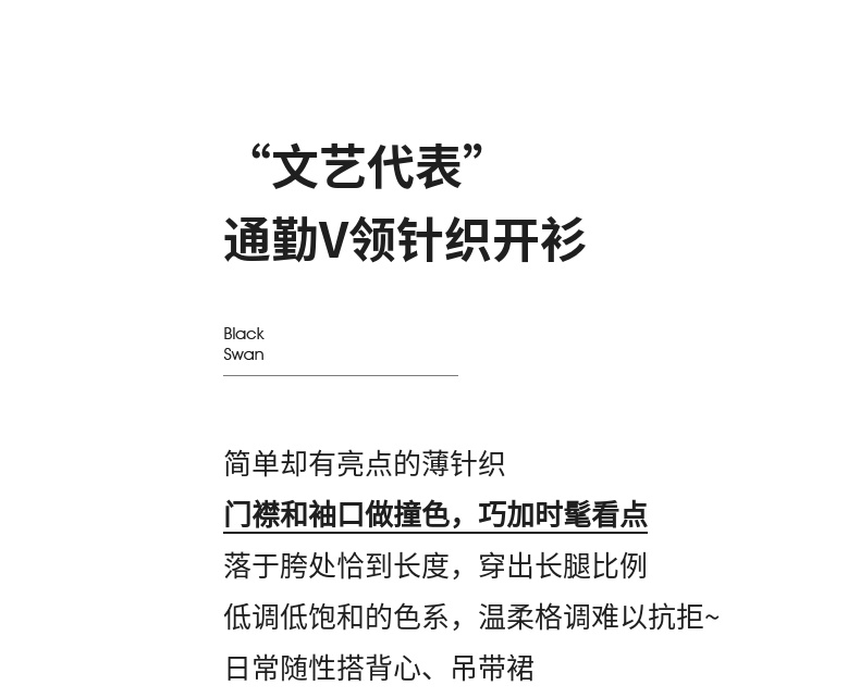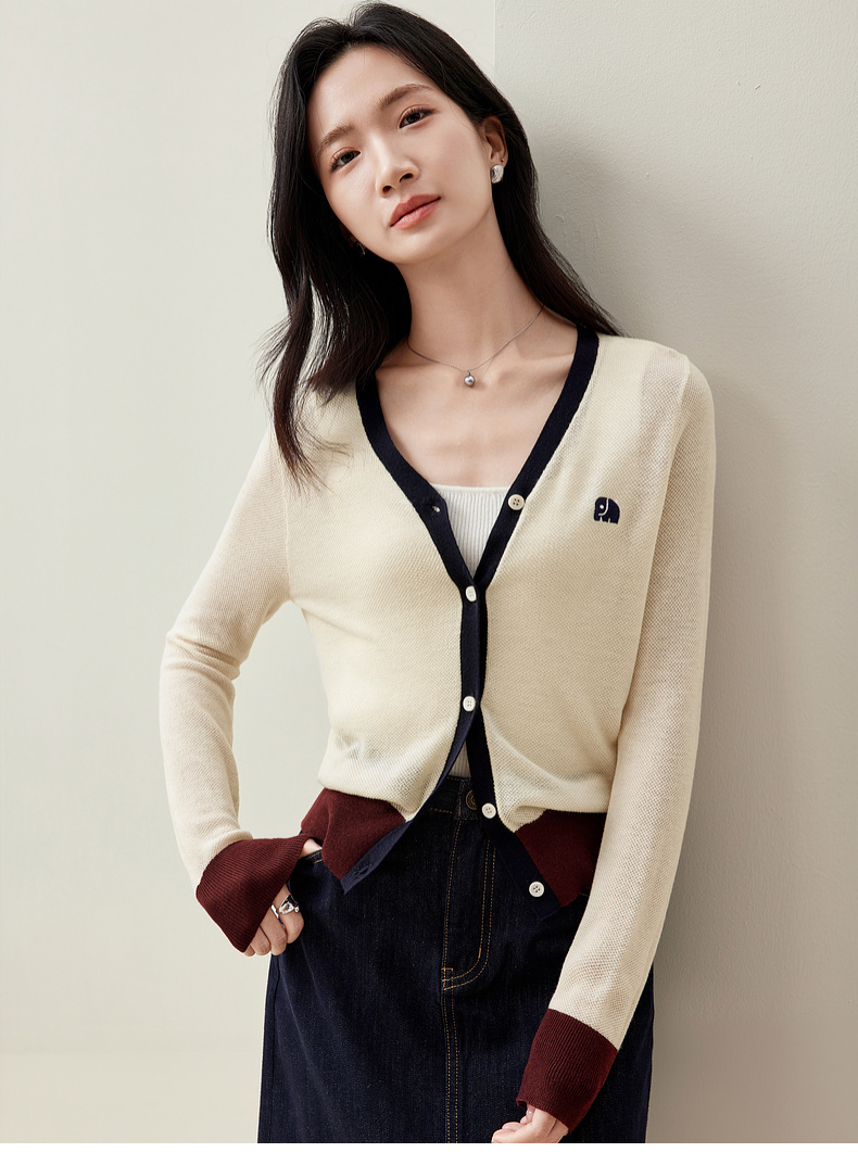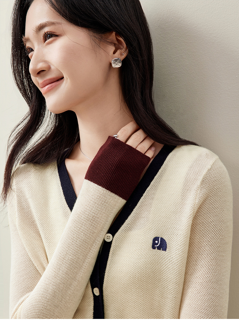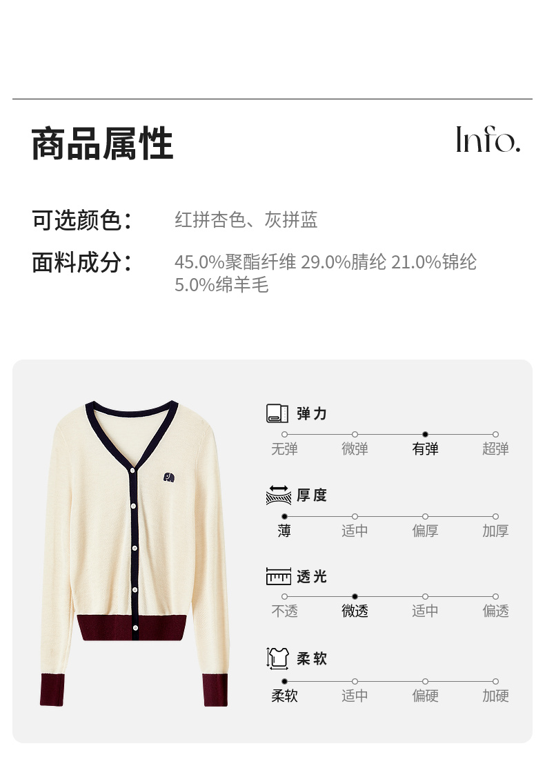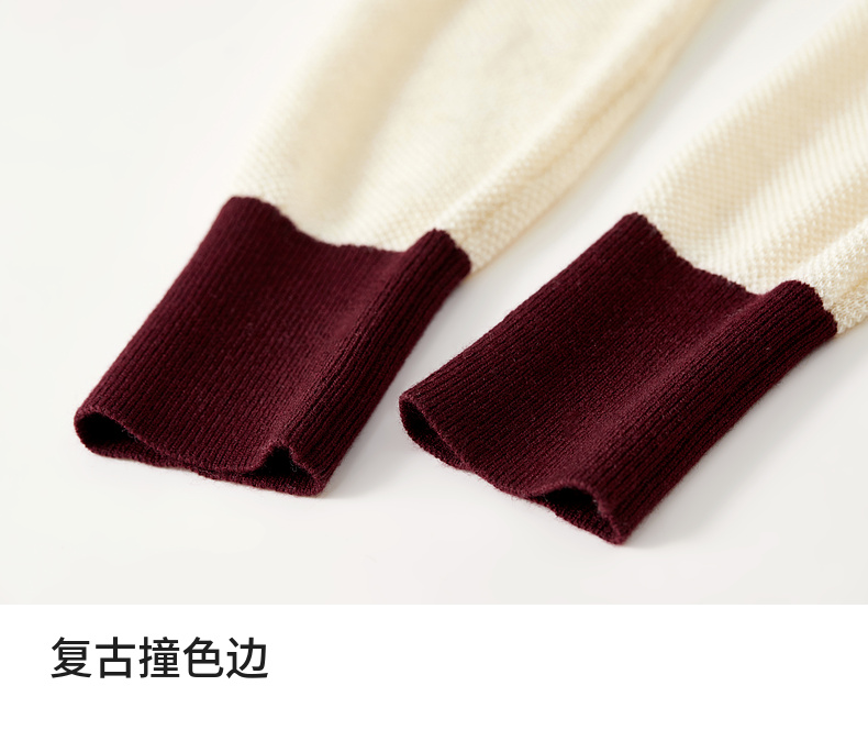 【内购】都市通勤落肩V领H型修身撞色针织开衫-W51H58420