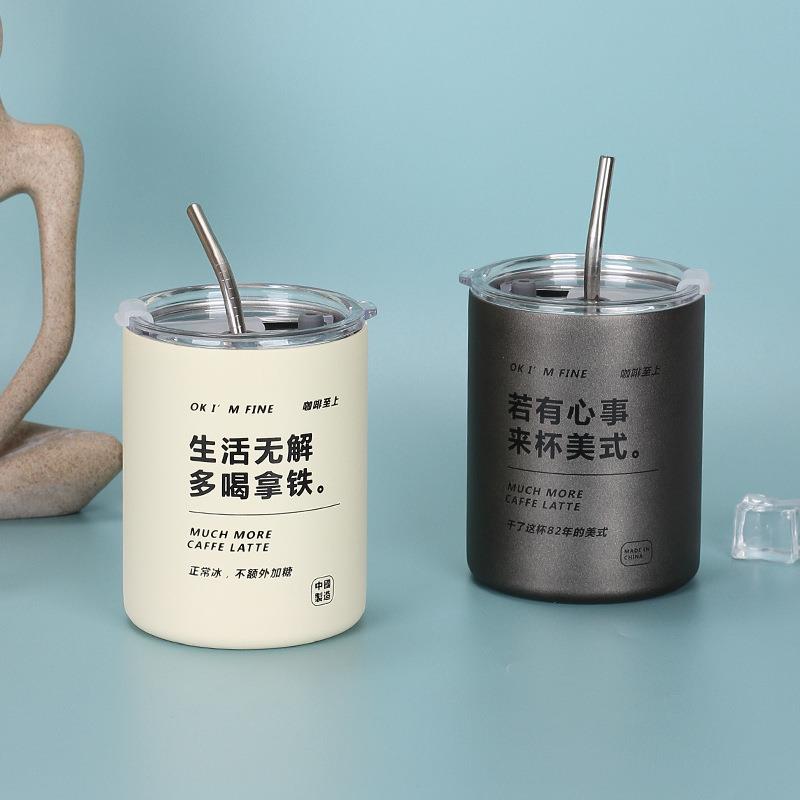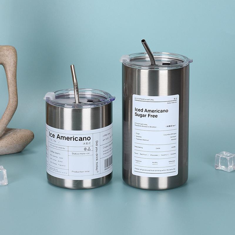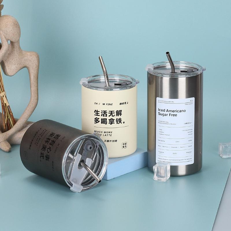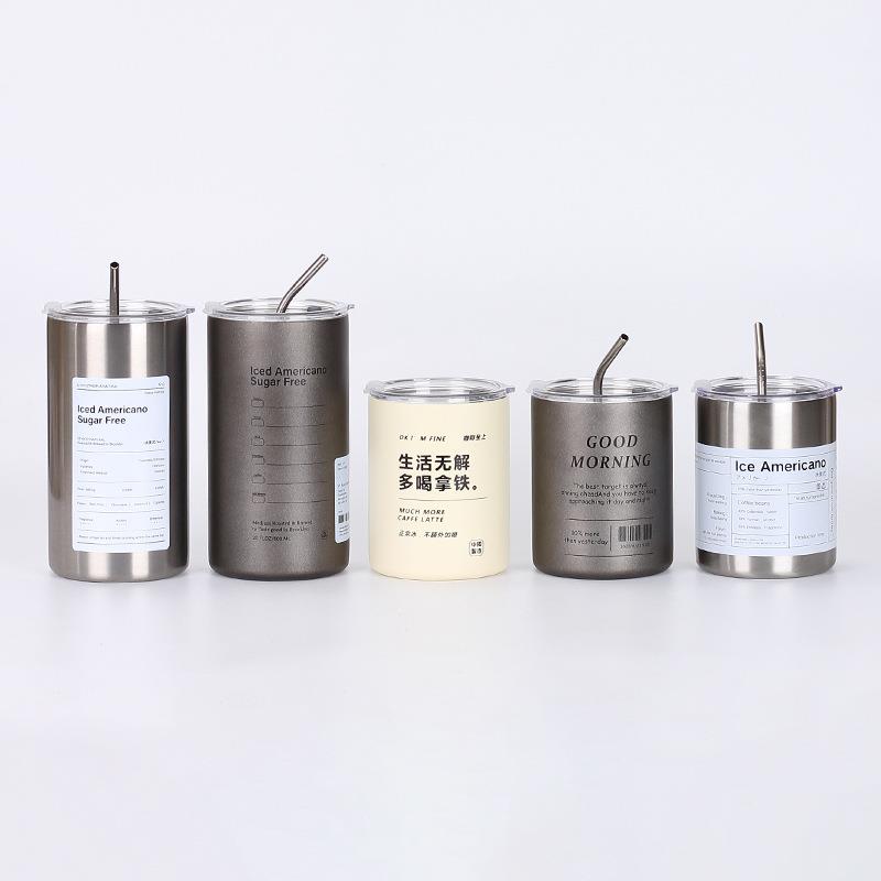 跨境304不锈钢冰美式咖啡杯真空双层带吸管直身杯家用便携保温杯