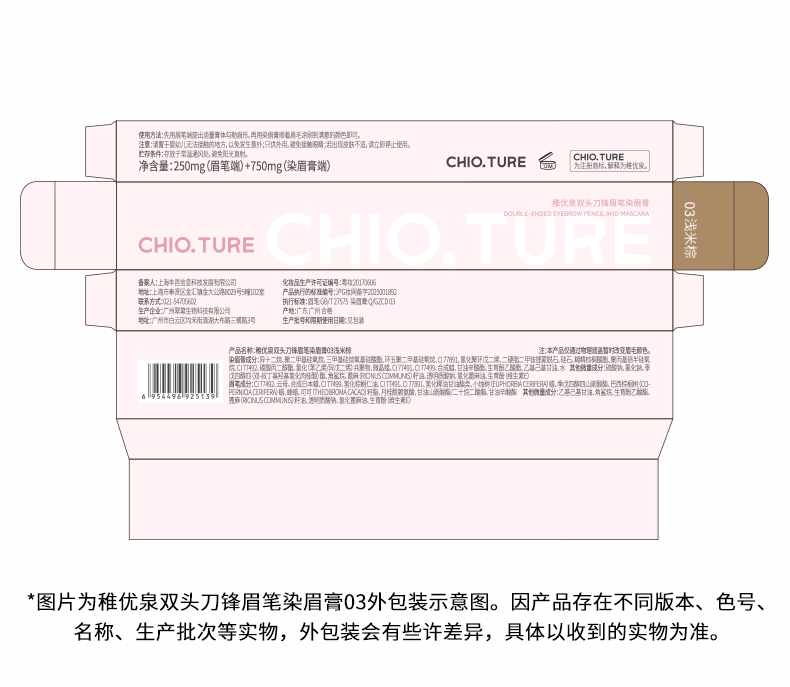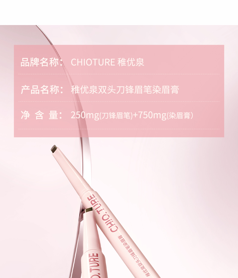 稚优泉(CHIOTURE)双头刀锋眉笔染眉膏二合一不易脱妆浅棕色野生眉