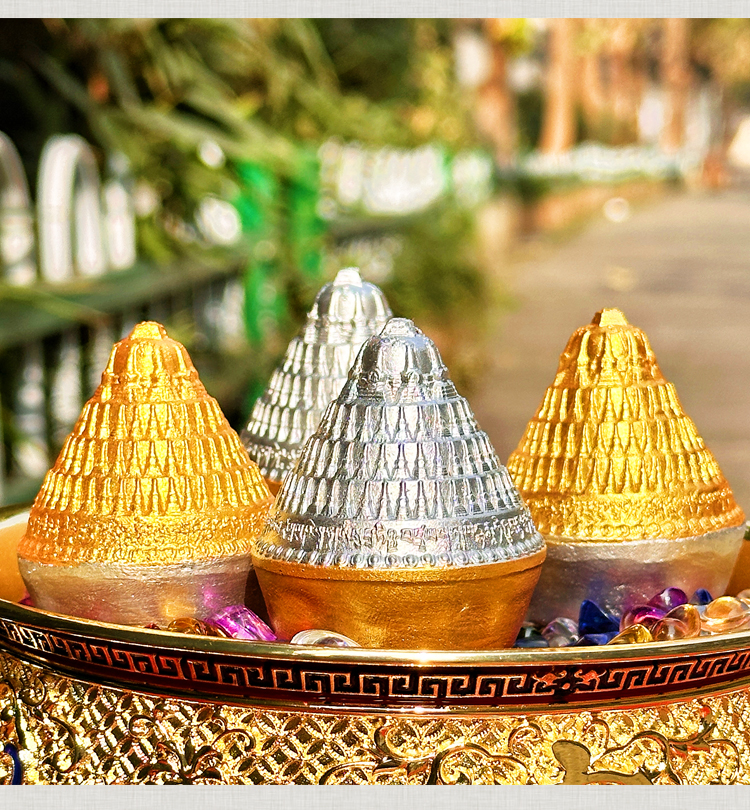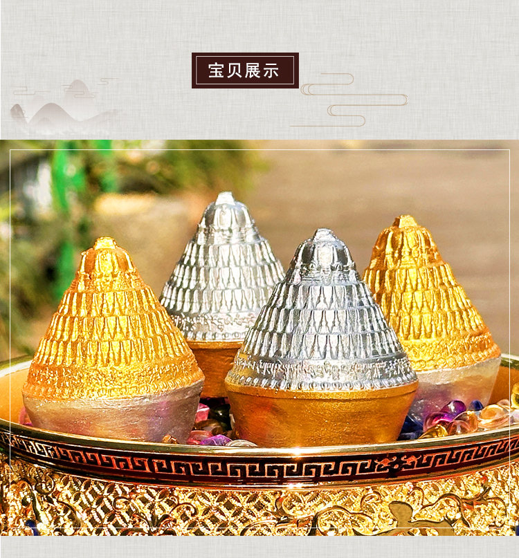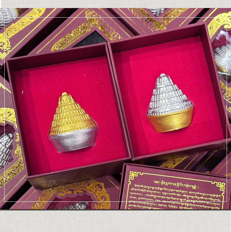 壤塘曾克如来八塔装藏舍利擦擦佛塔金刚塔金银两色擦擦高5.8cm最宽处4.8cm
