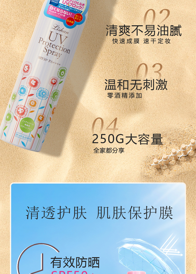日本lishan防晒喷雾100g/110299 清香型清爽不易油腻