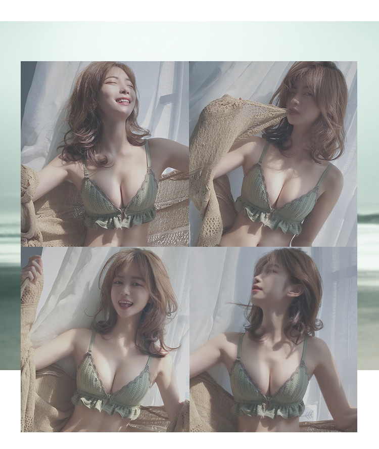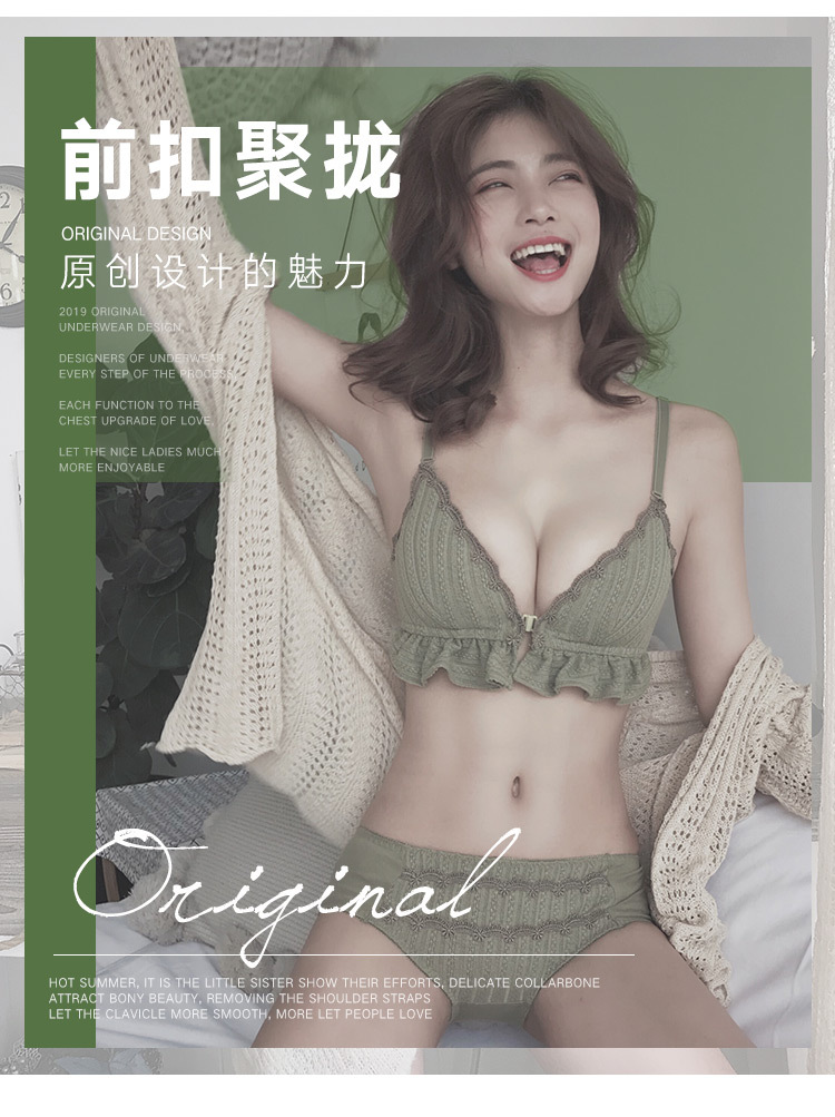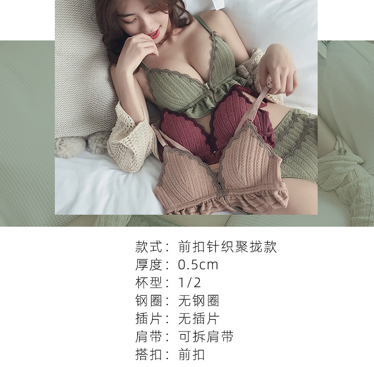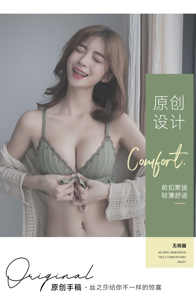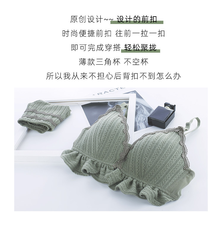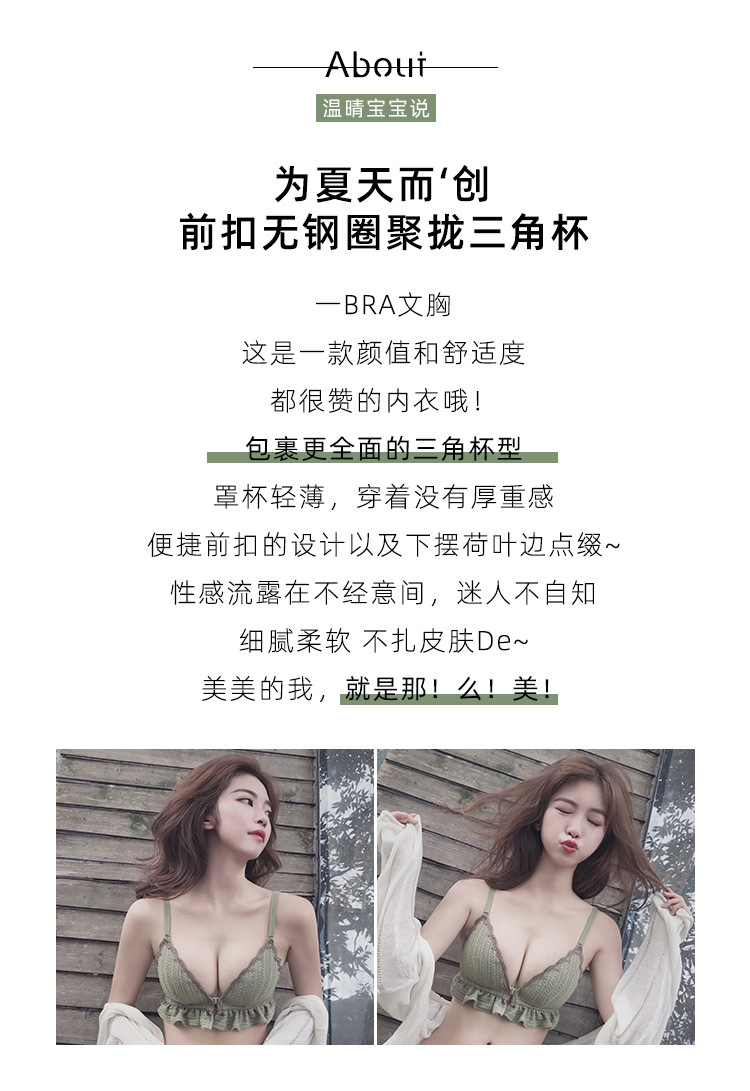 【原创】薄款前扣三角杯内衣女小胸聚拢调整型无钢圈文胸收副乳