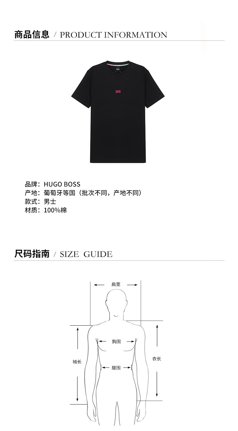 品牌:HUGO BOSS/雨果博斯 产地:葡萄牙等国(批次不同,产地不同) 款式:男士 颜色:白色LOGO图案 材质:100%棉 备注:批次不同,货品略有差异,以实物为准