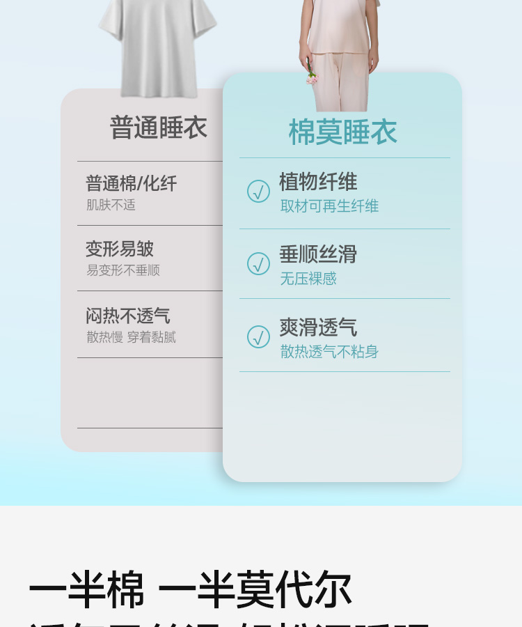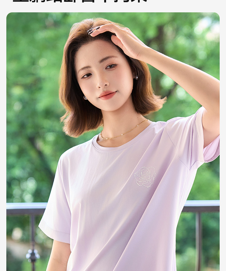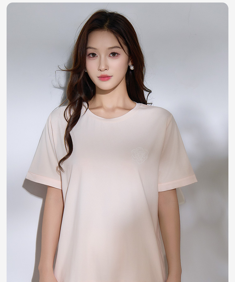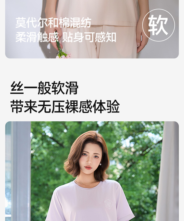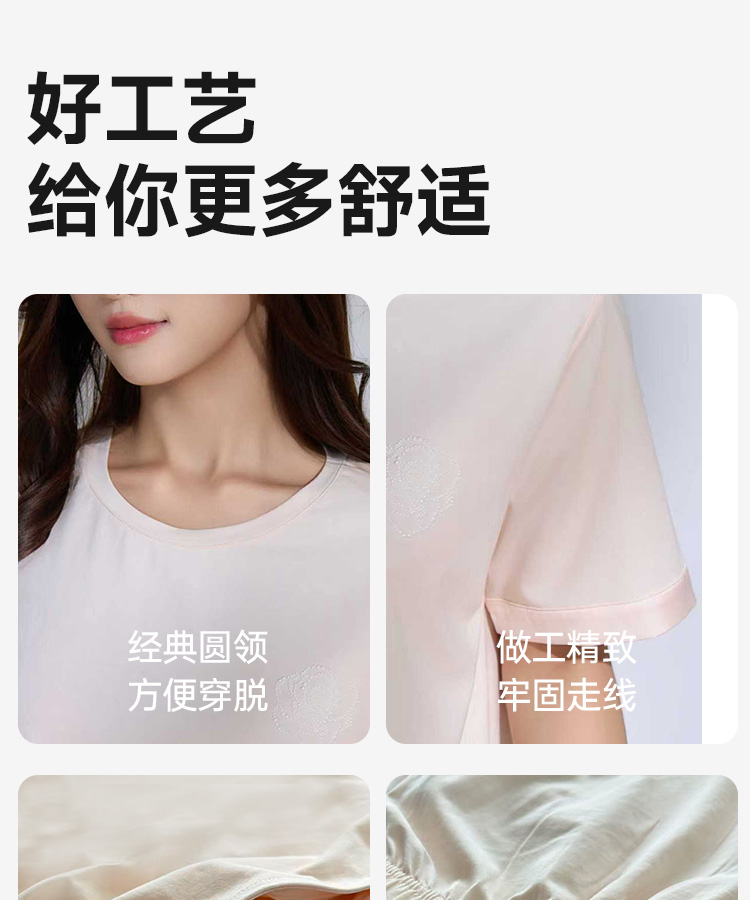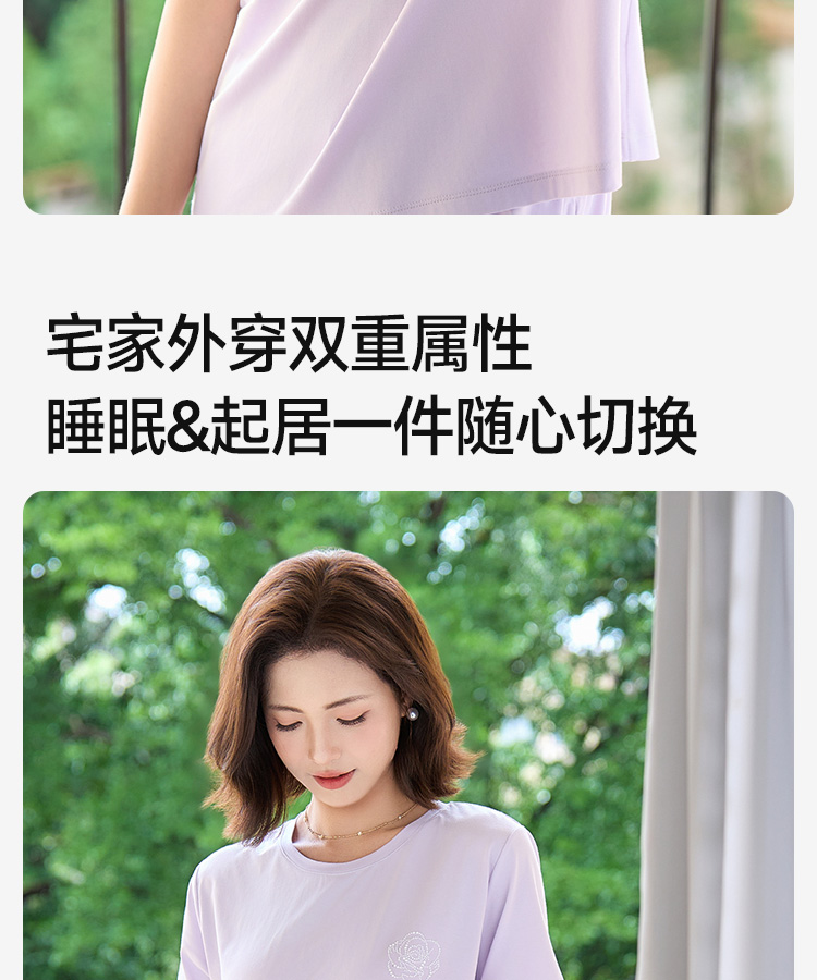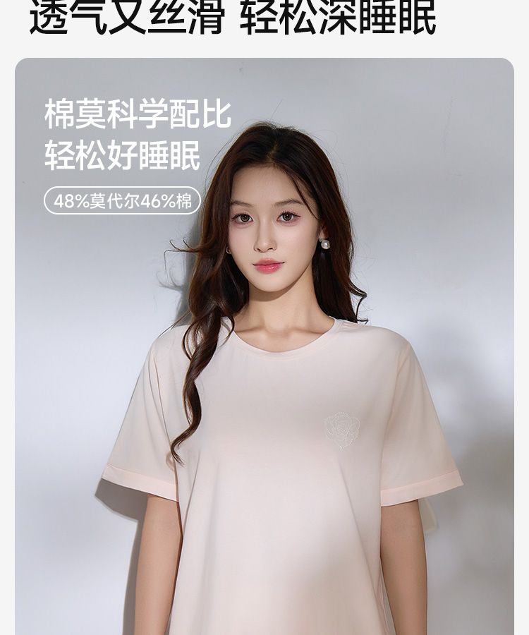 高支棉莫睡衣(玫瑰花开圆领)