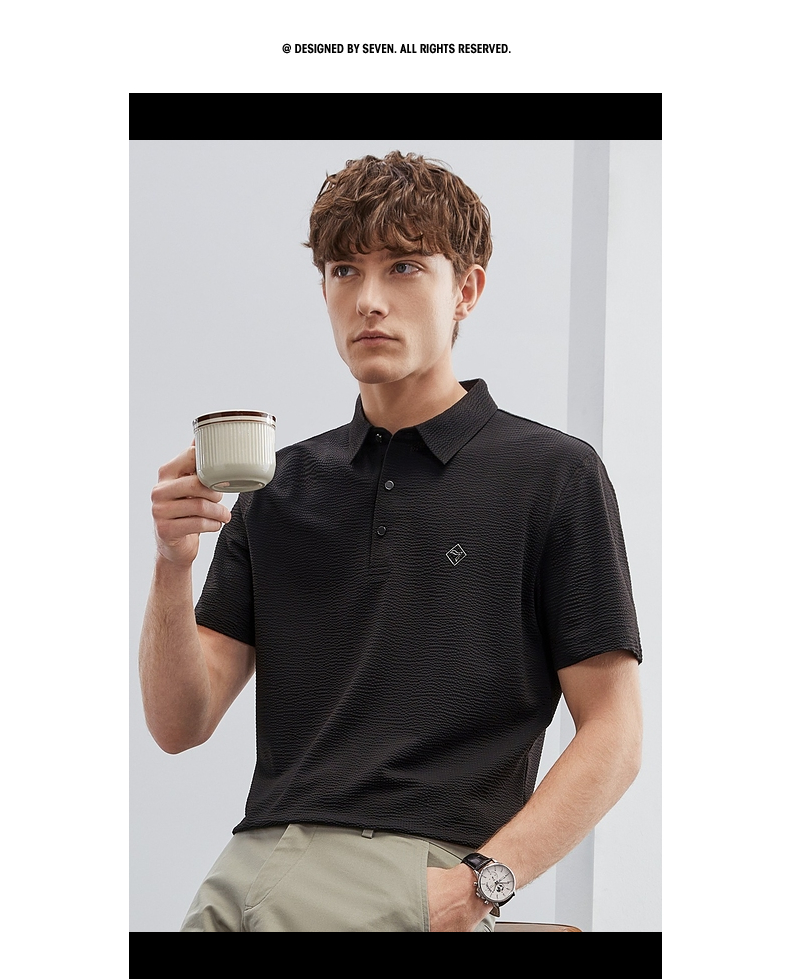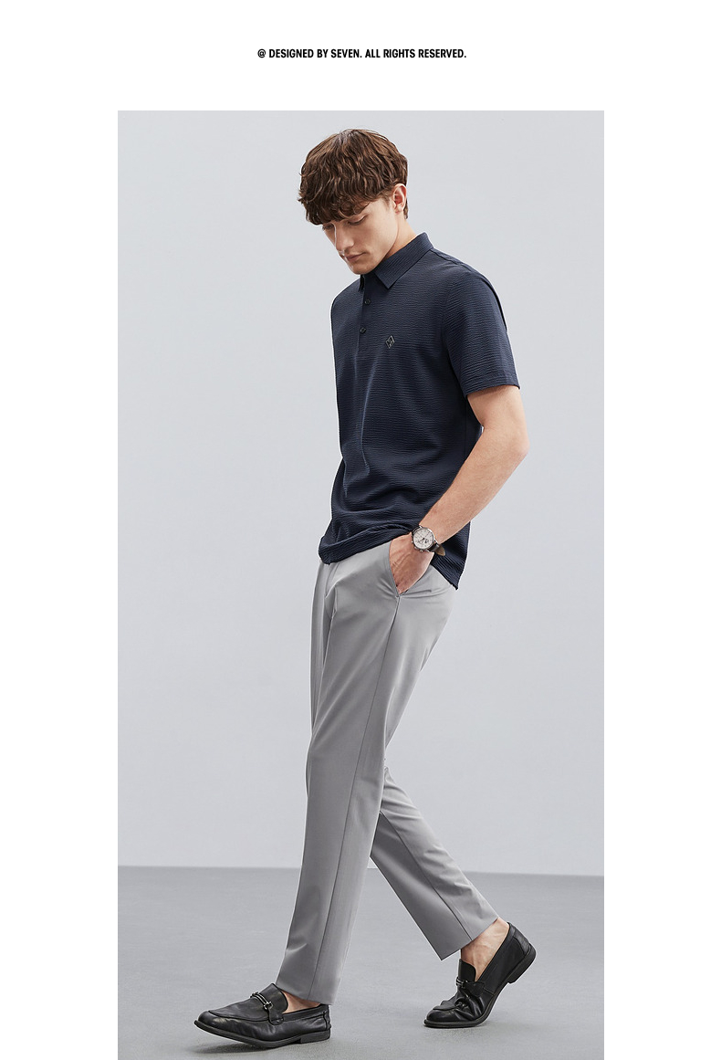 柒牌男士短袖polo衫夏季新款商务休闲舒适高弹无缝领T恤上衣 124T70540