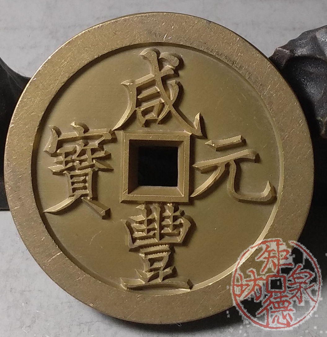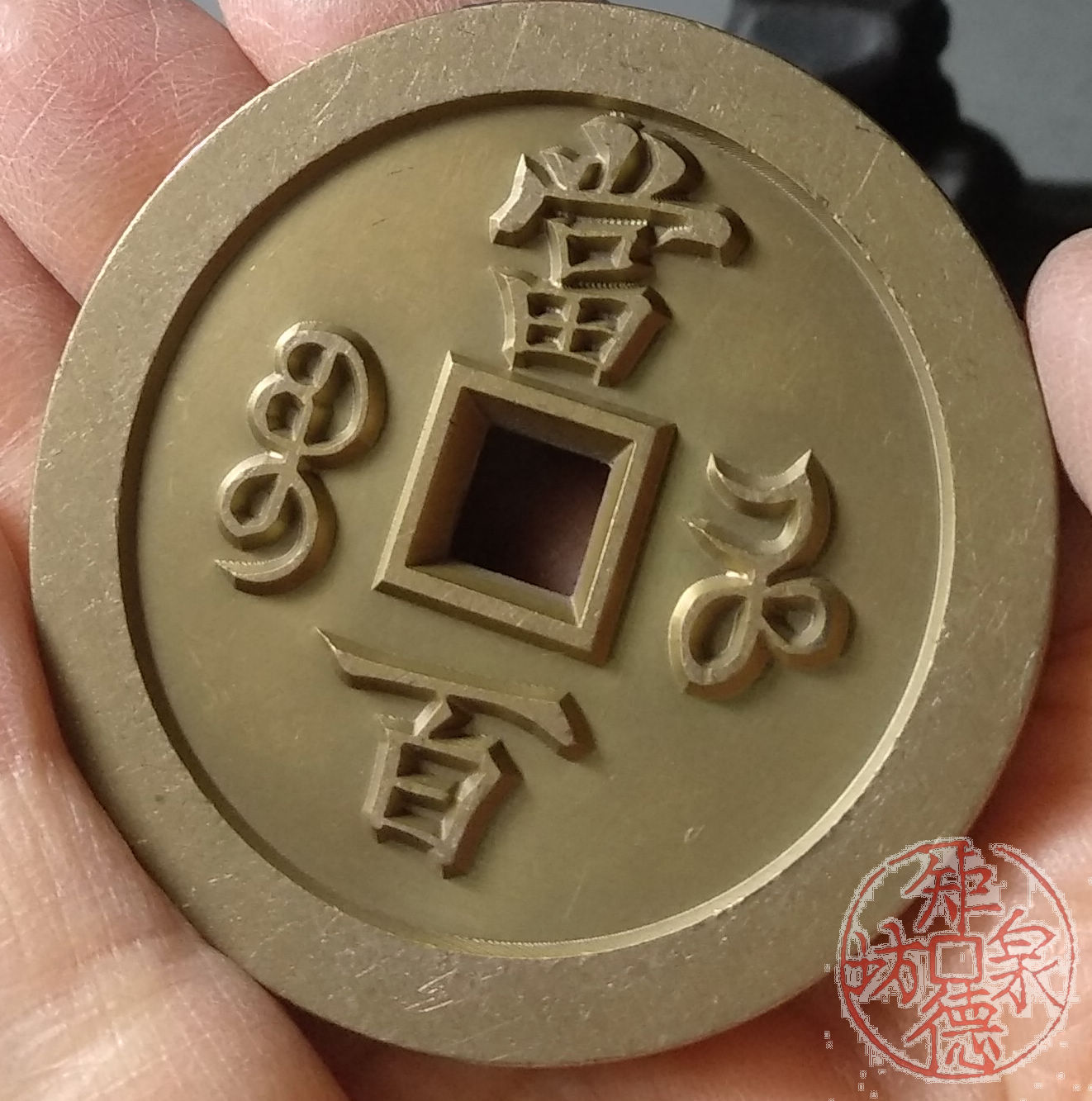 古泉书馆文创 咸丰元宝 宝河当百 雕母 文房铜镇 DM0016