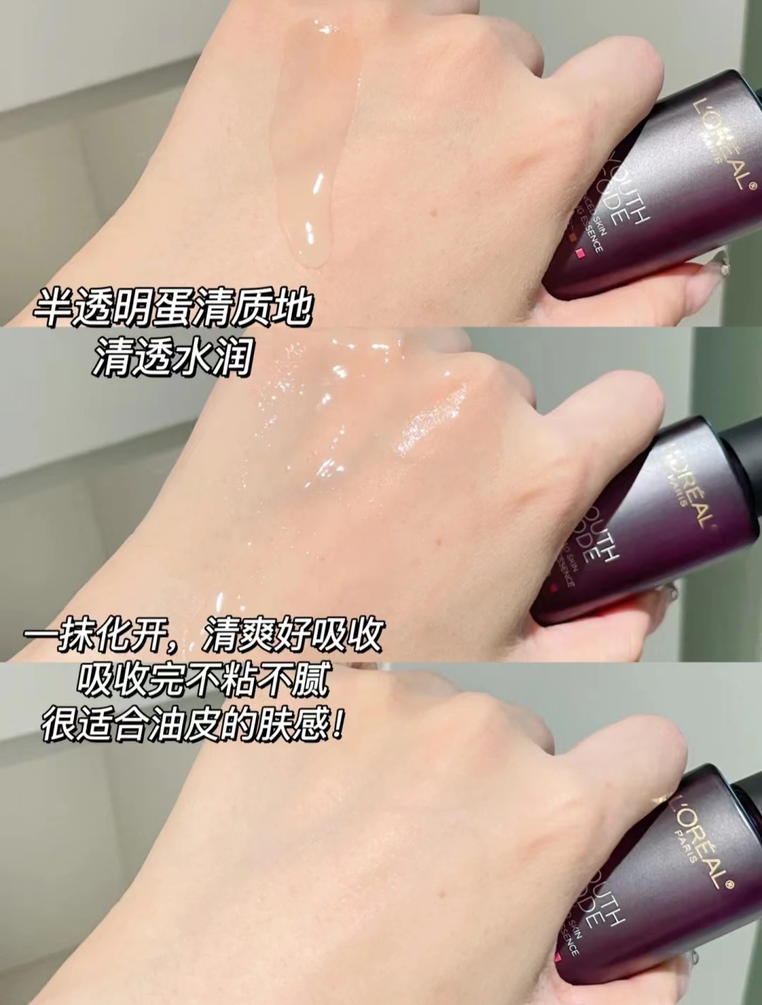 第四代在使用感上依然继承了招牌蛋清质地,清爽且不黏腻,完全不挑肤质,油皮和油痘肌也能轻松驾驭。不添加防腐剂、荧光剂、色素和类固醇,对于敏感肌也非常友好。