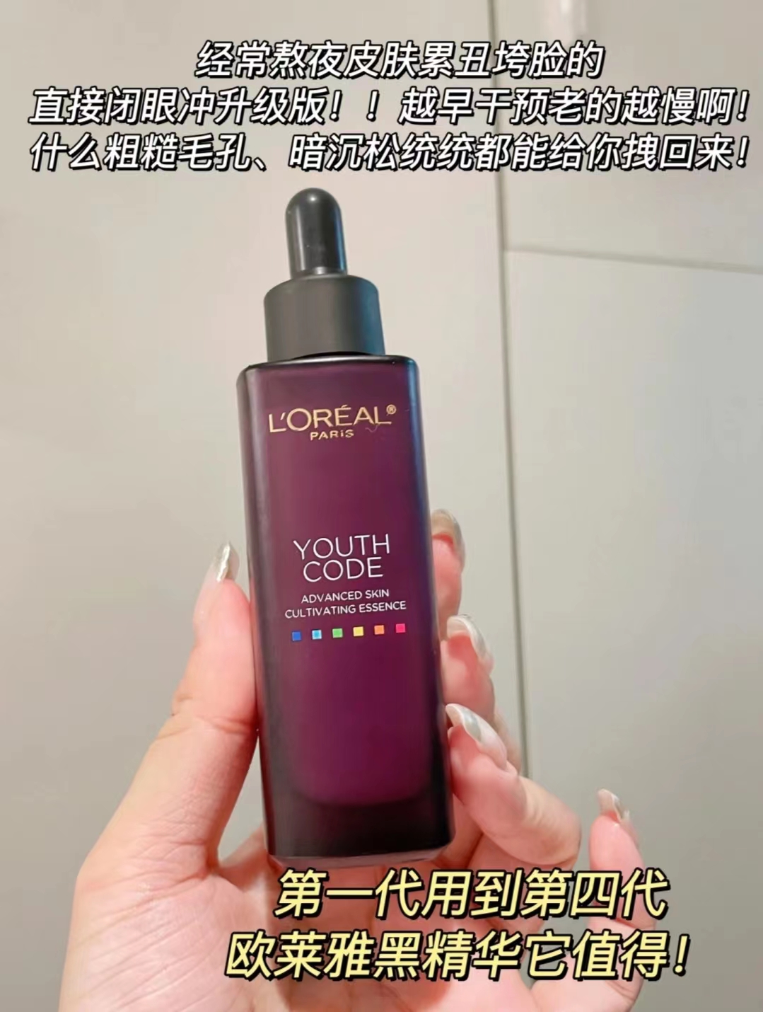 欧莱雅黑精华第四代引入集团前沿的仿生表皮再造技术!让它比前几代的抗老效果有了质的飞跃,可以说能让整个抗老界都抖三抖!