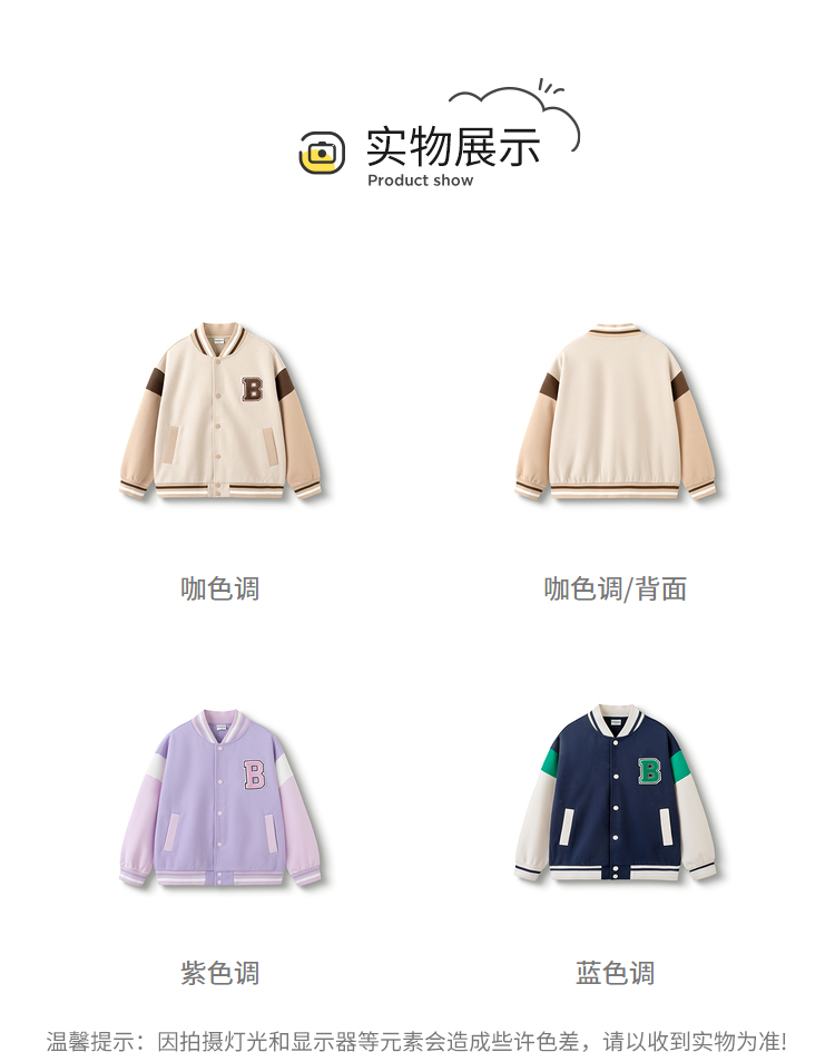 巴拉巴拉儿童外套棒球服男童春秋款新款洋气中大童女童学院风