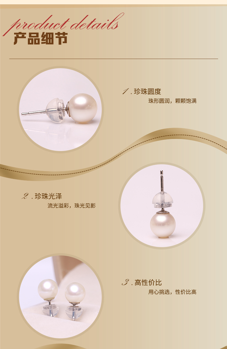 美裕 925银淡水珍珠耳钉6-7mm 106799Z