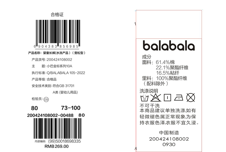 巴拉巴拉宝宝裤子女童休闲裤加绒秋冬季婴儿长裤撞色翻脚口时尚潮