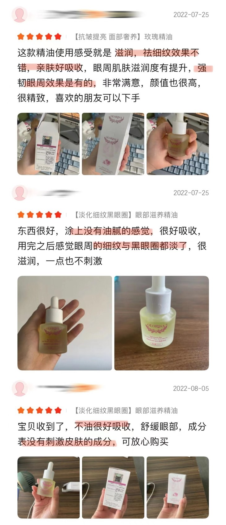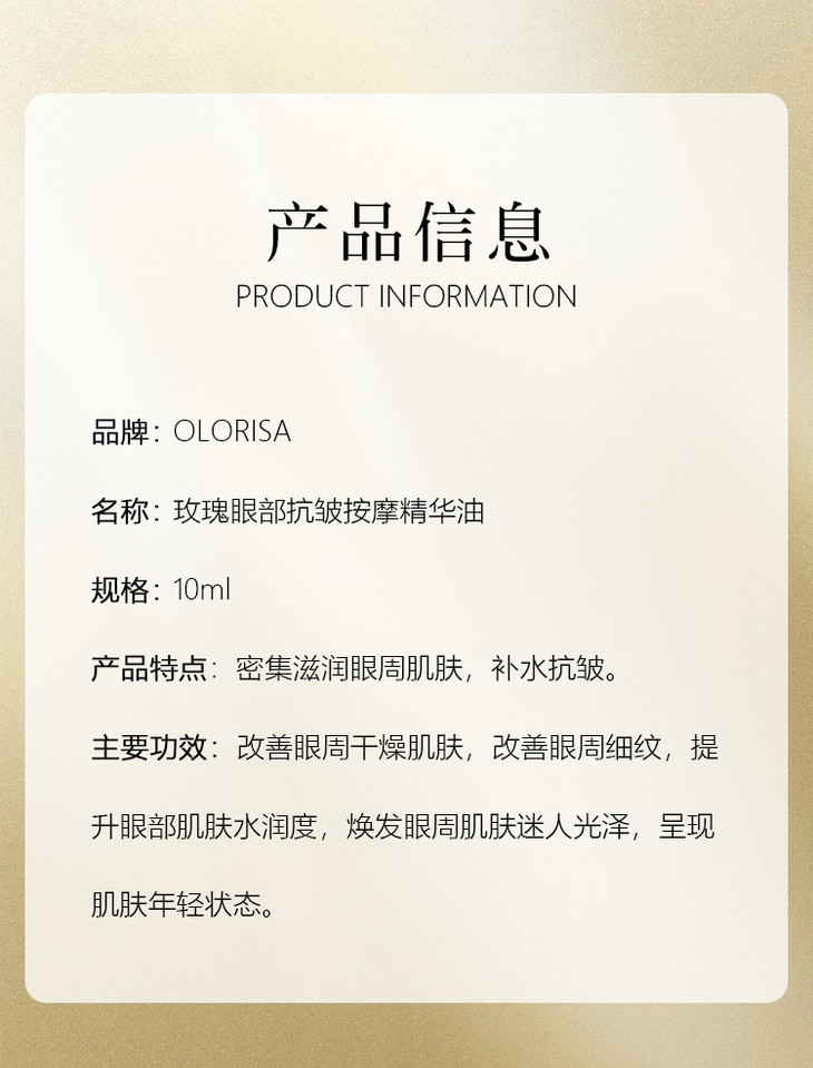 【产品名称】澳洛莉玫瑰眼部抗皱按摩精华油